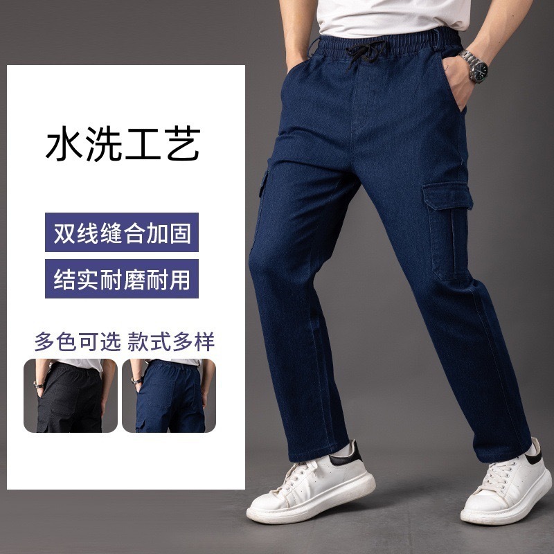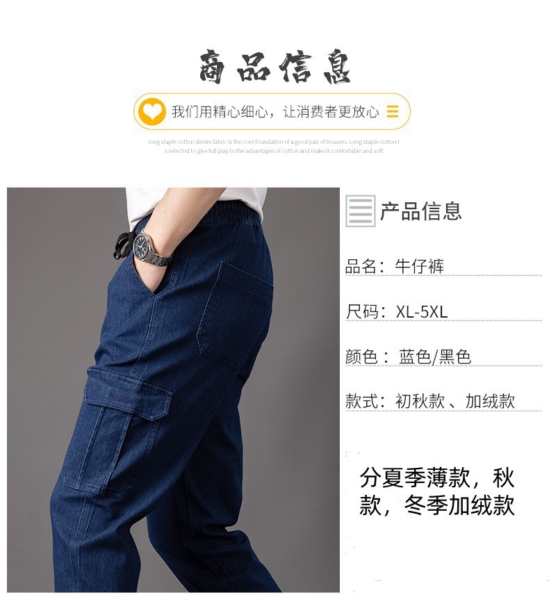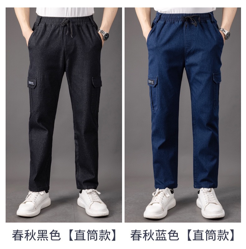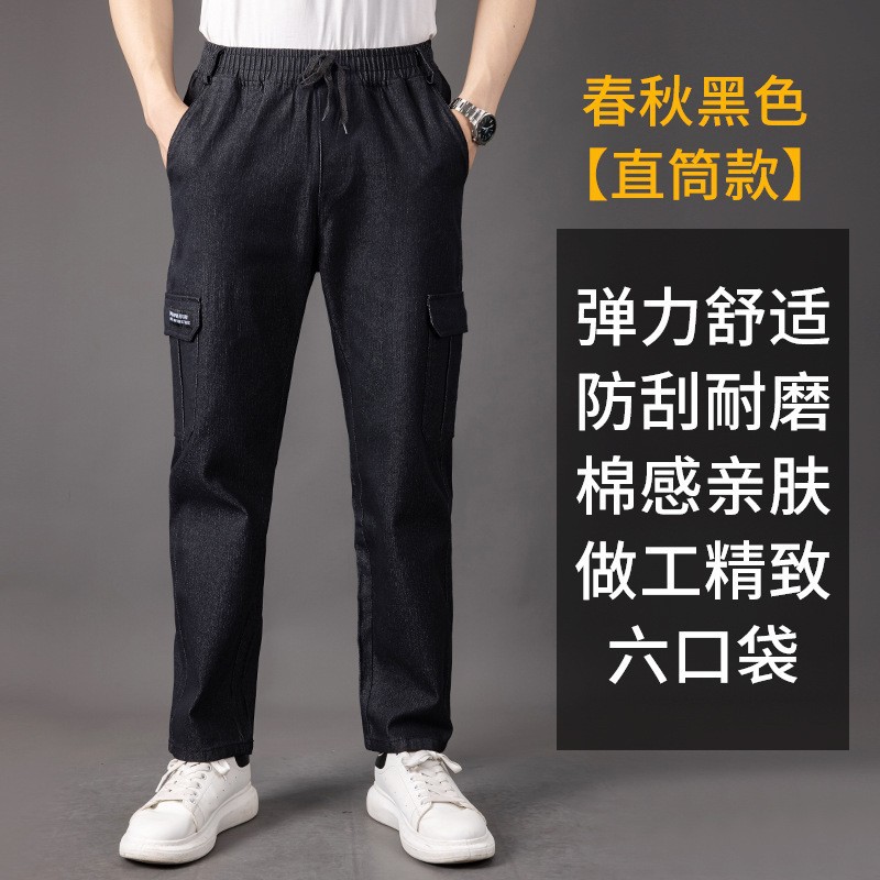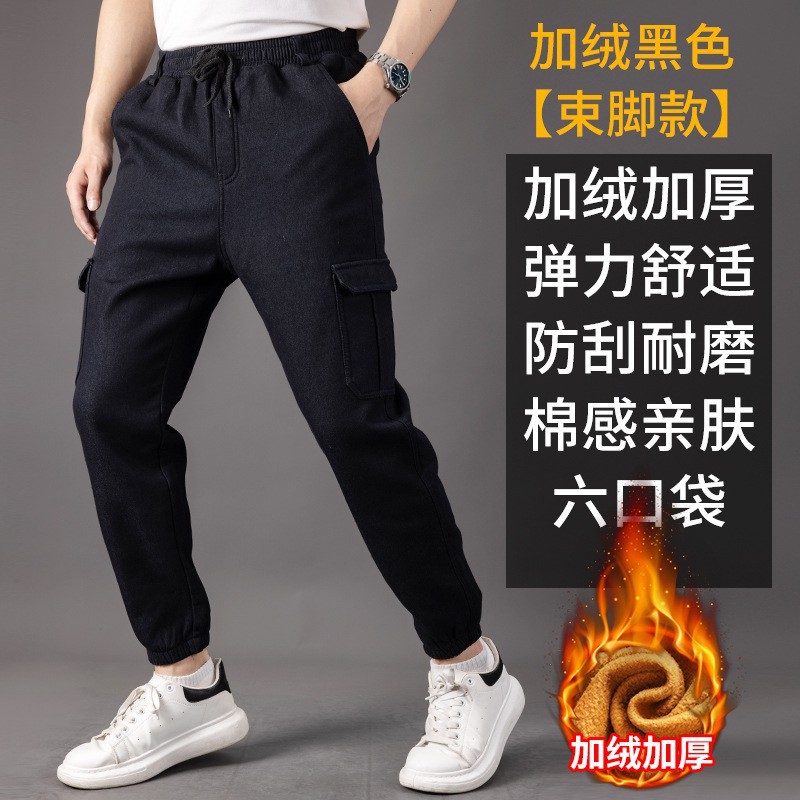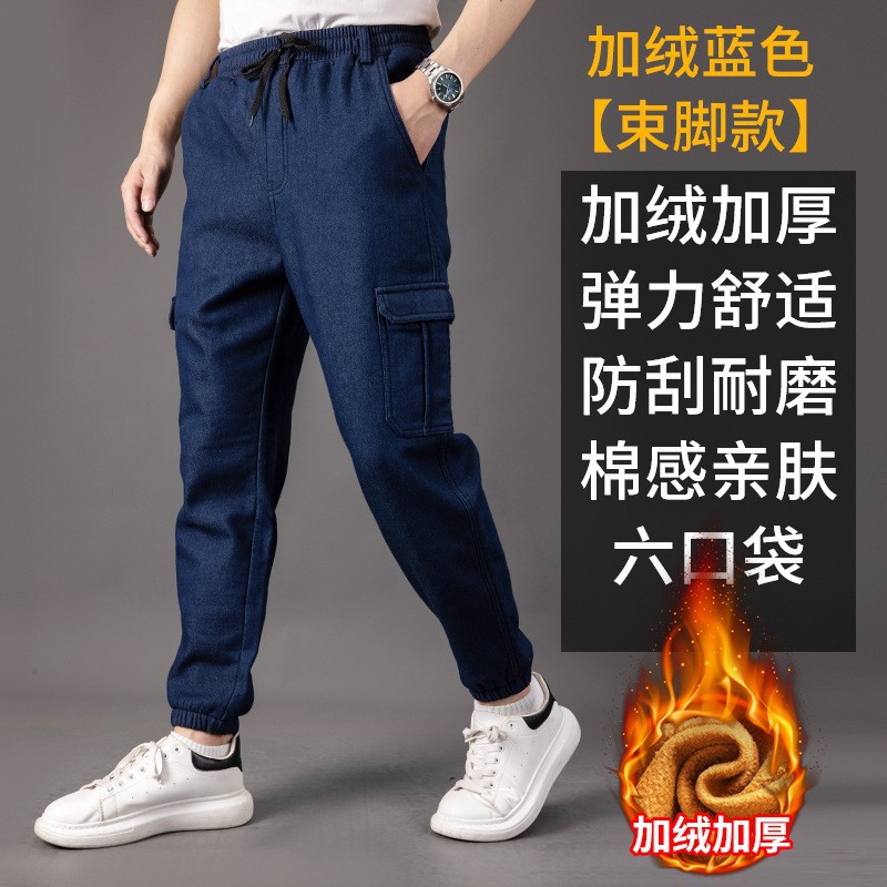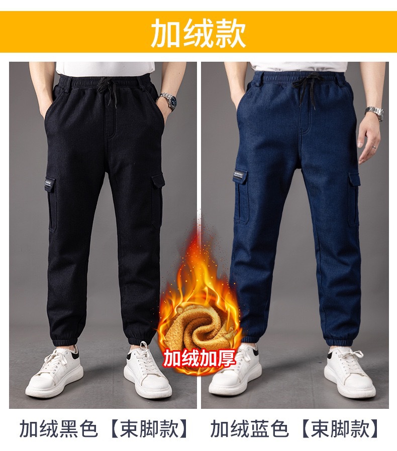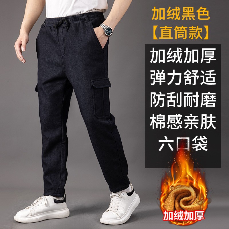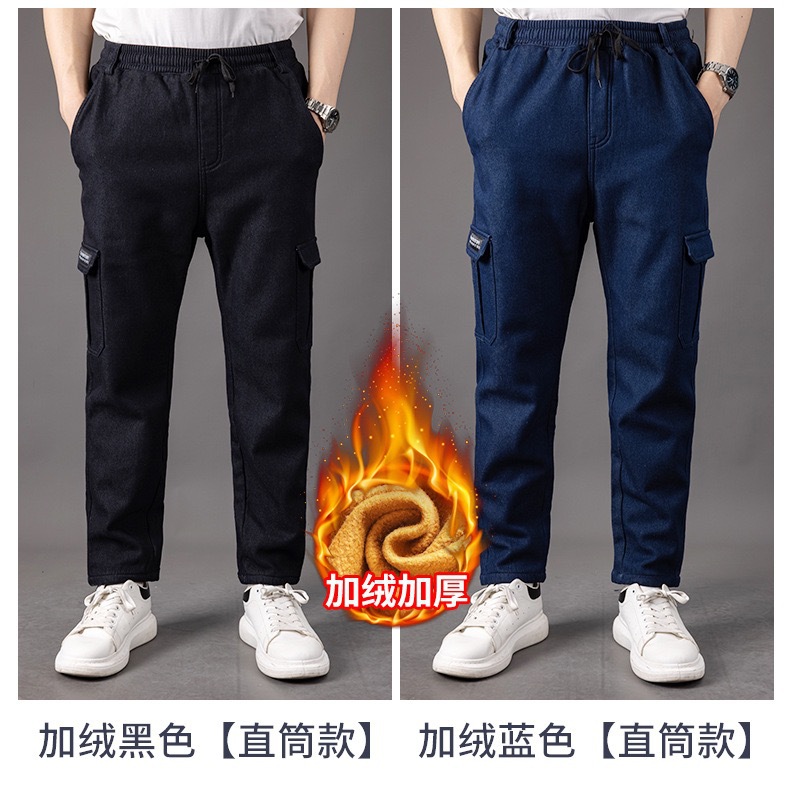 가을과 겨울 기모 남성용 캐주얼 바지 느슨한 스트레이트 플러스 사이즈 남성용 바지 번들 다리 스트레치 청바지 남성스토어 가기