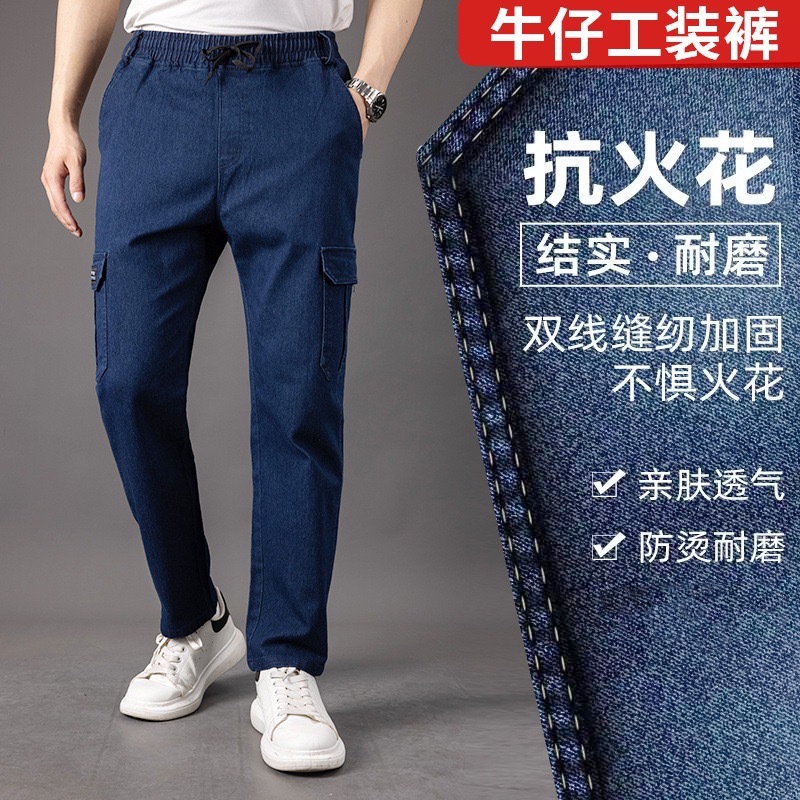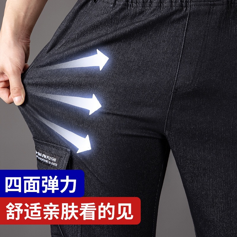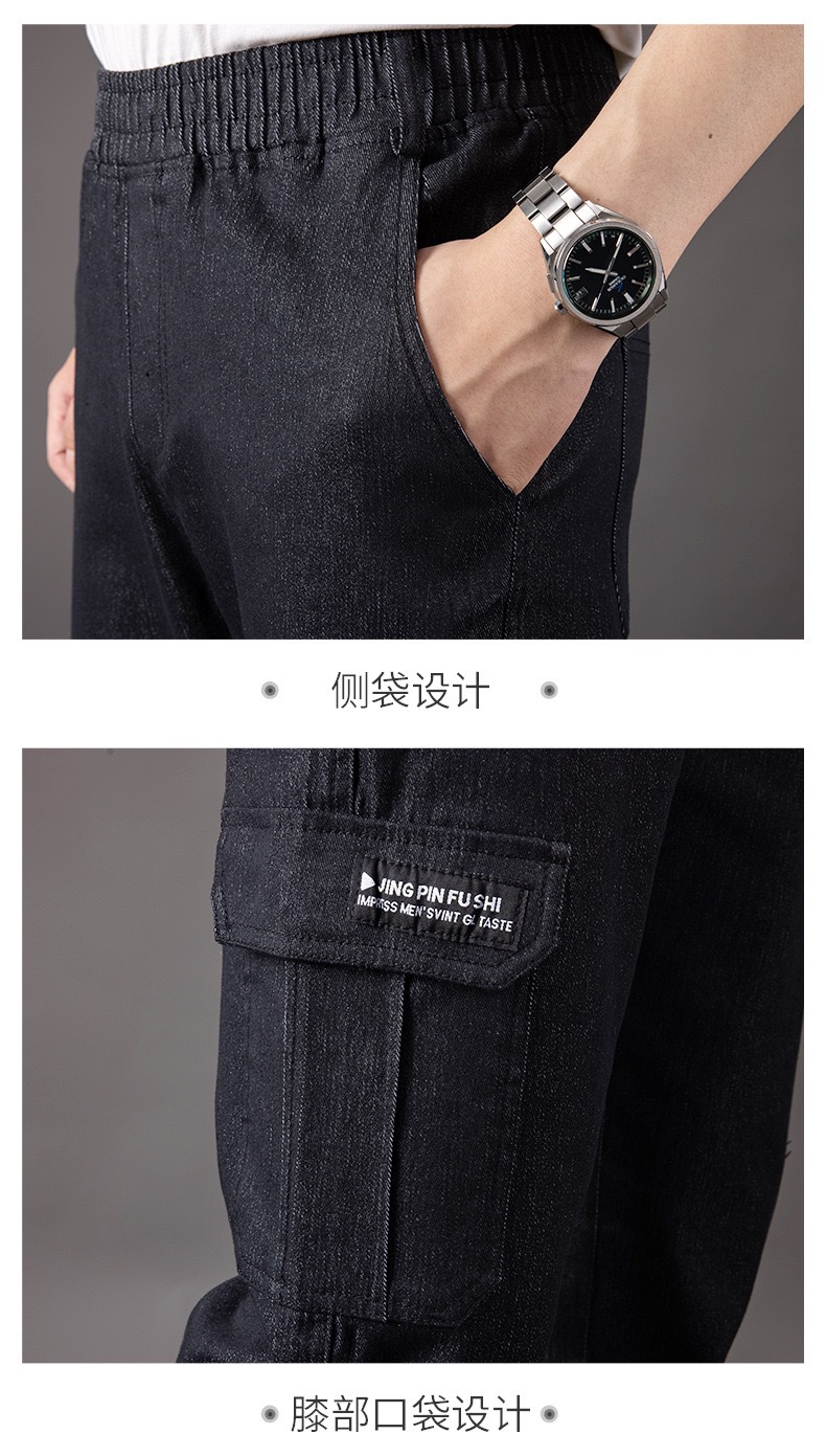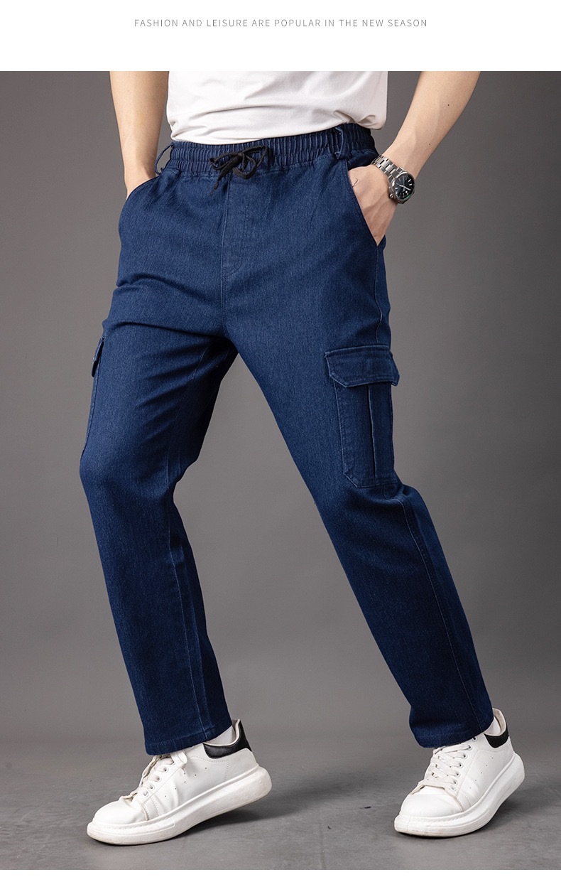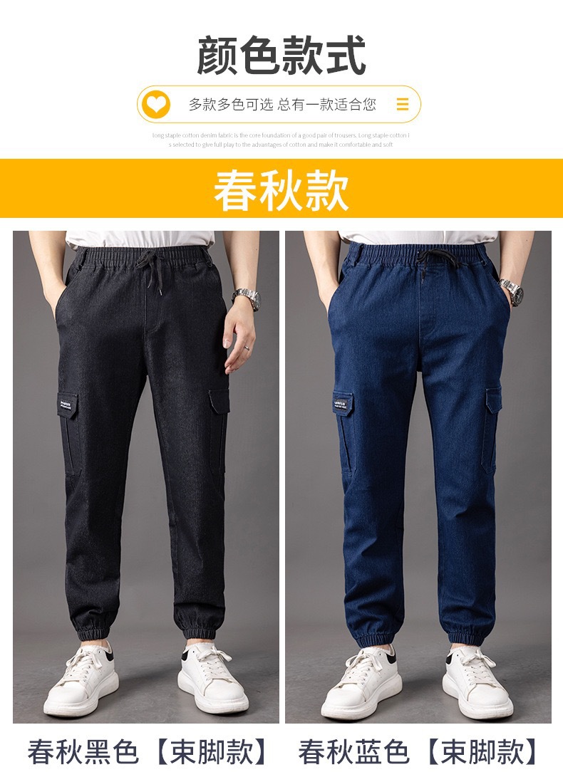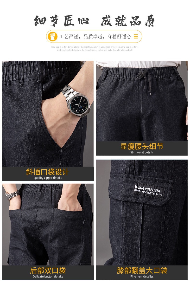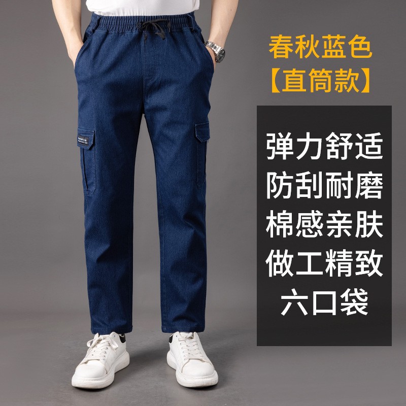 가을과 겨울 기모 남성용 캐주얼 바지 느슨한 스트레이트 플러스 사이즈 남성용 바지 번들 다리 스트레치 청바지 남성스토어 가기
