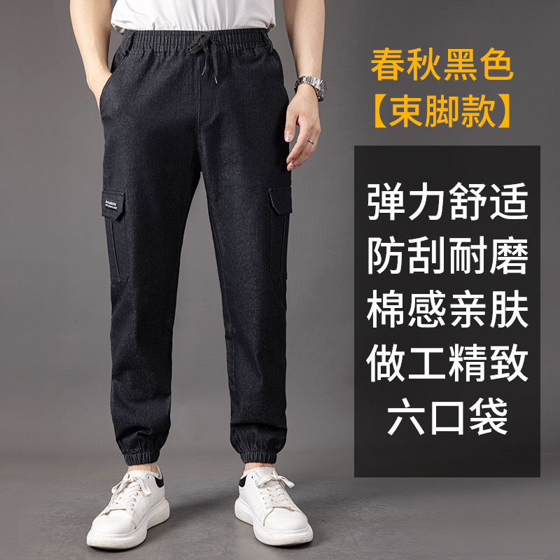 • [블랙] [다리] 데님 드로스트링 [봄, 가을 중간 두께 스타일]
