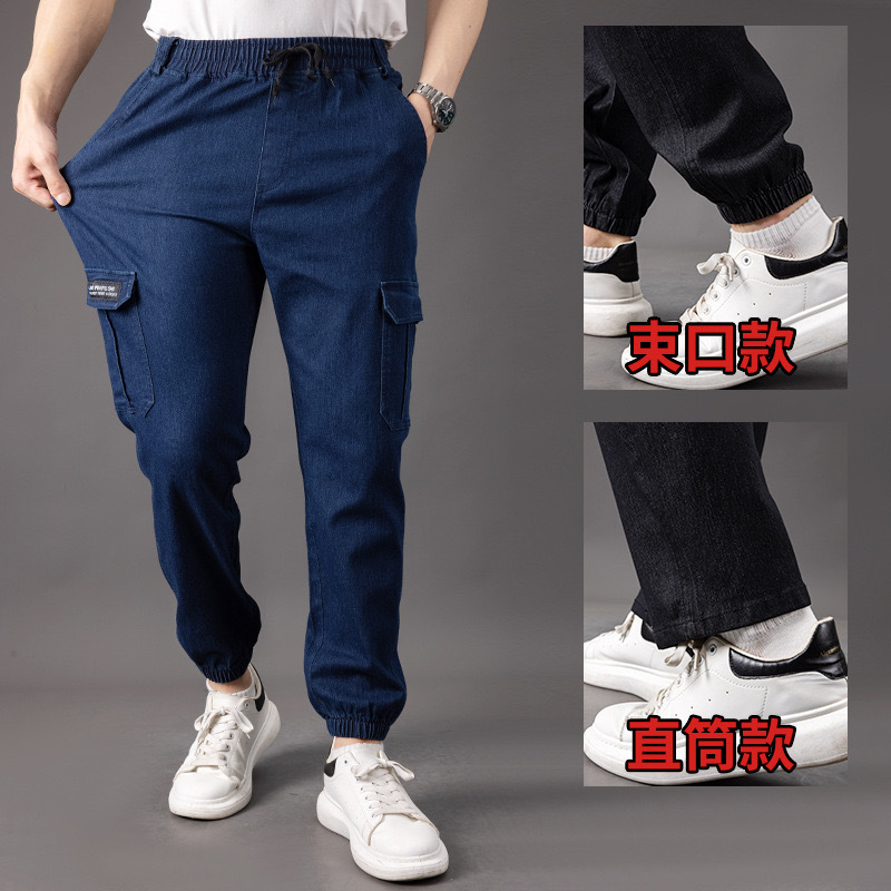 • [블루] [다리] 데님 드로스트링 [봄, 가을 중간 두께 스타일]