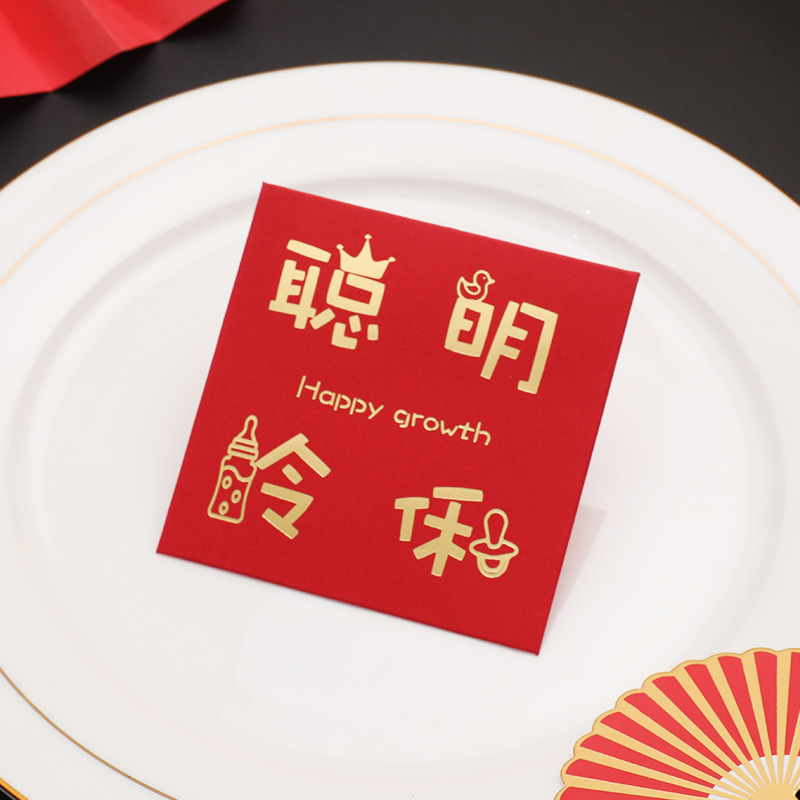 宝宝百日宴满月酒小红包生日出生周岁聪明伶俐成长方形回礼利