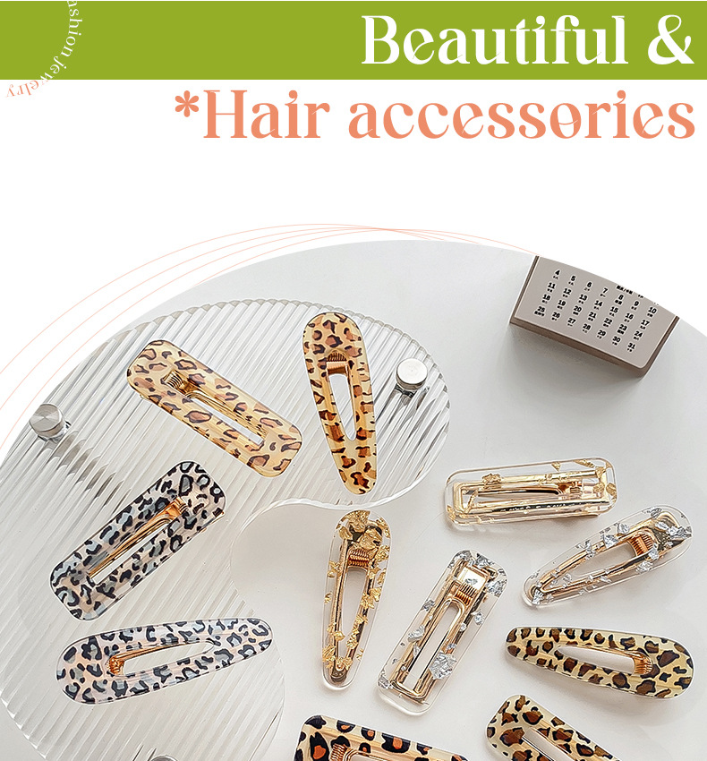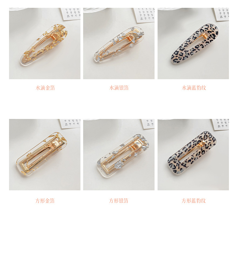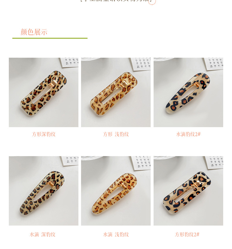 유럽과 미국 소녀의 간단한 레오파드 컬러 아크릴 드롭 클립 스퀘어 사이드 클립 레트로 하이 엔드 스타일 뱅 헤어 액세서리스토어 가기