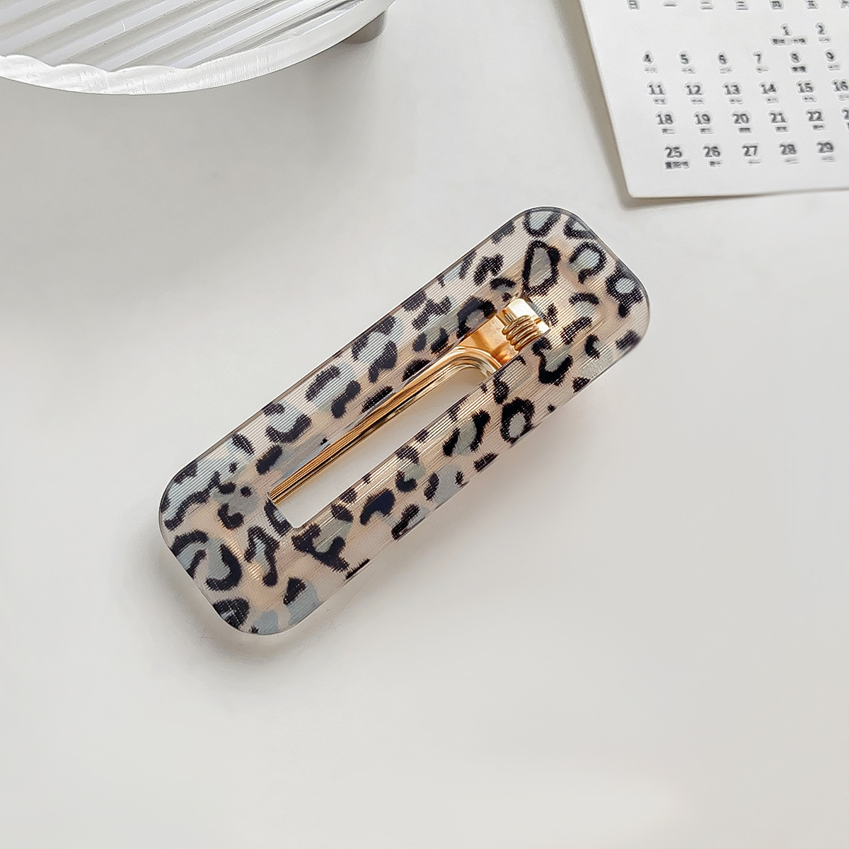 유럽과 미국 소녀의 간단한 레오파드 컬러 아크릴 드롭 클립 스퀘어 사이드 클립 레트로 하이 엔드 스타일 뱅 헤어 액세서리