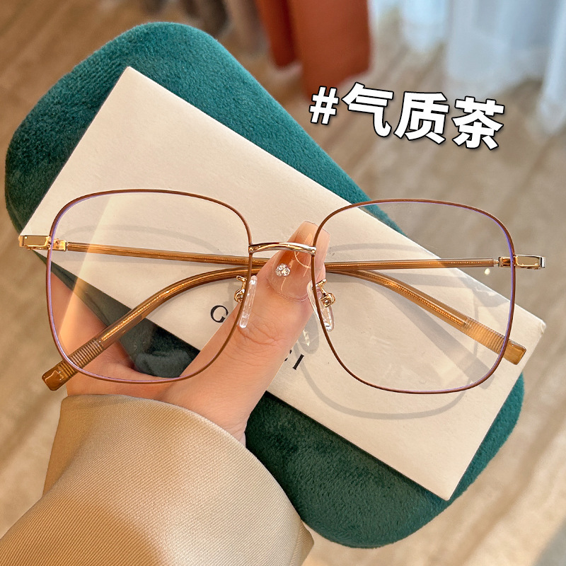밀크 티 컬러 아이 안경 Myopia 장착 뒷 거울 일반 얼굴 어린 소녀 슬리밍 유행 금속 얼굴 작은 빨간 책스토어 가기