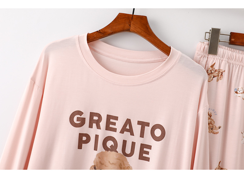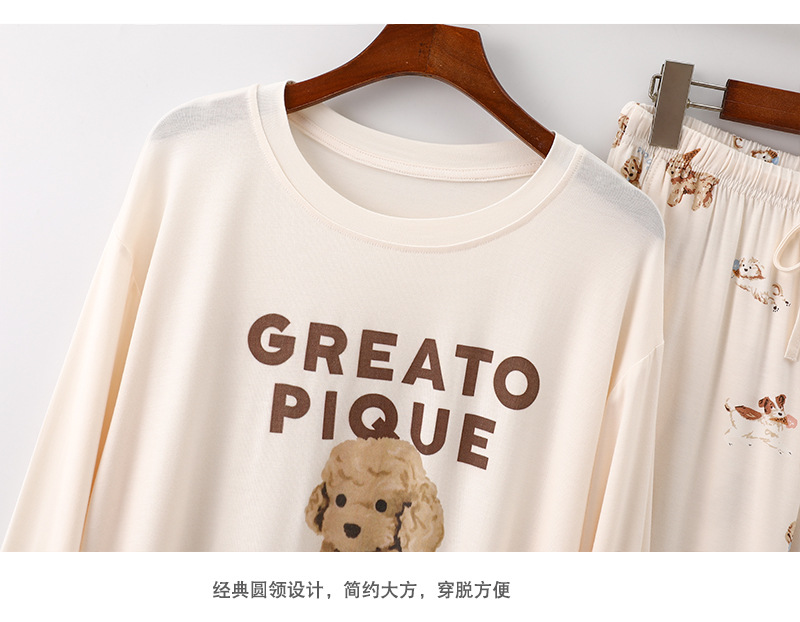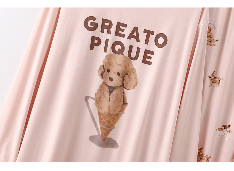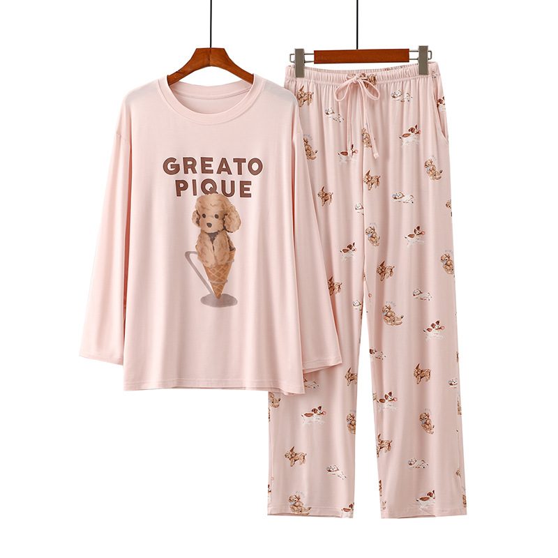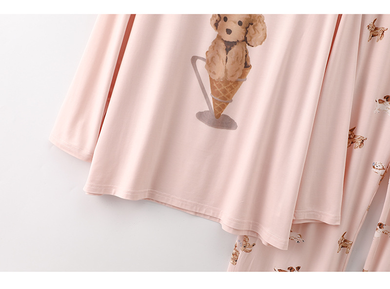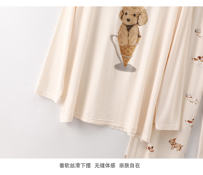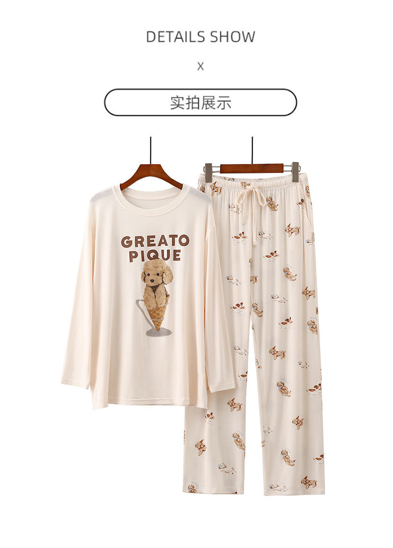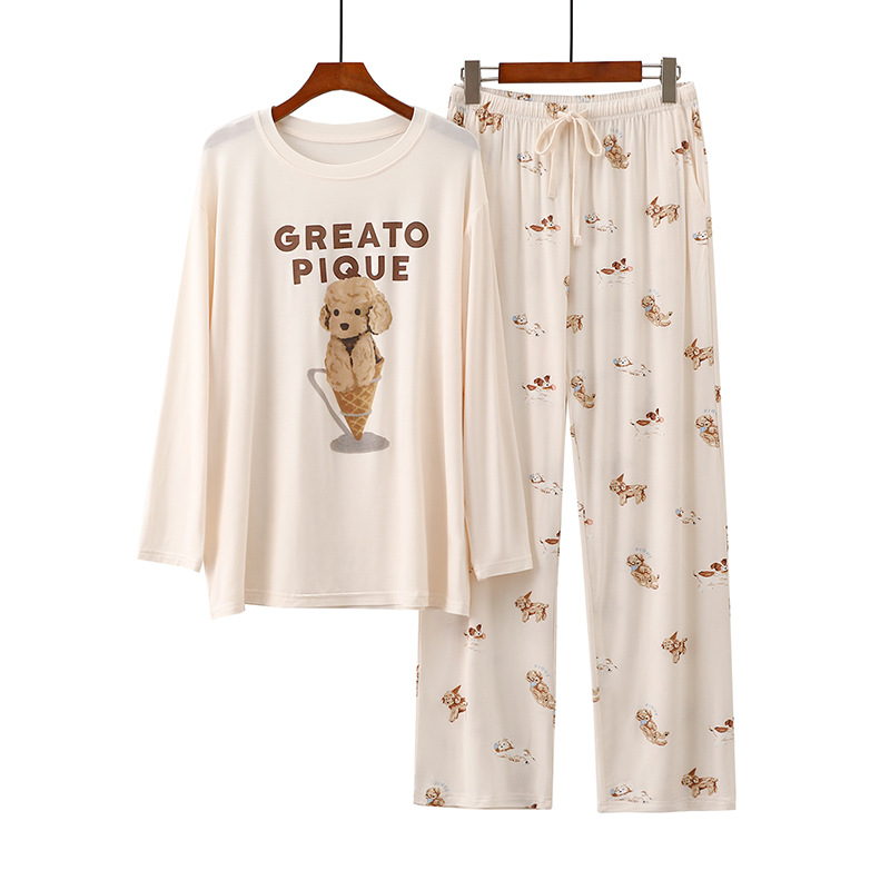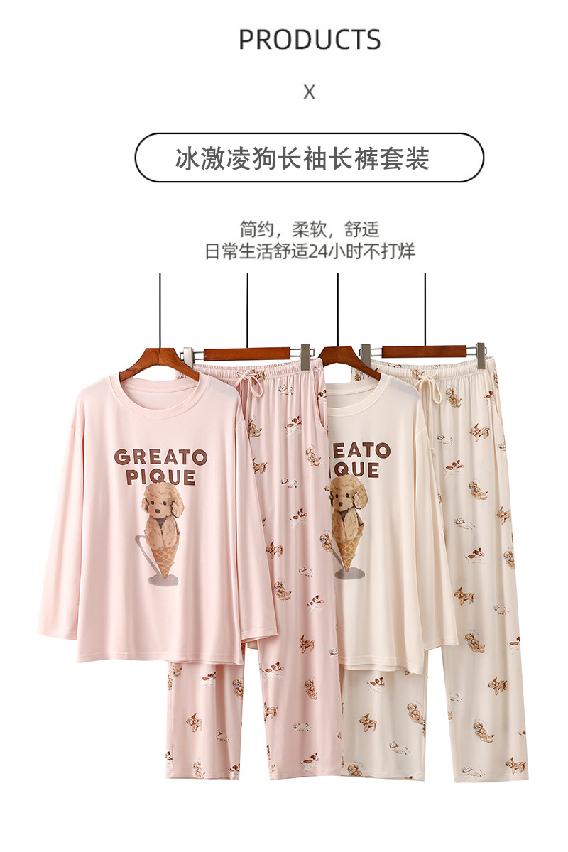 여성을위한 새로운 만화 아이스크림 개 잠옷 봄, 가을 긴팔 바지 라운드 넥 느슨한 홈웨어 세트 2024 신규스토어 가기