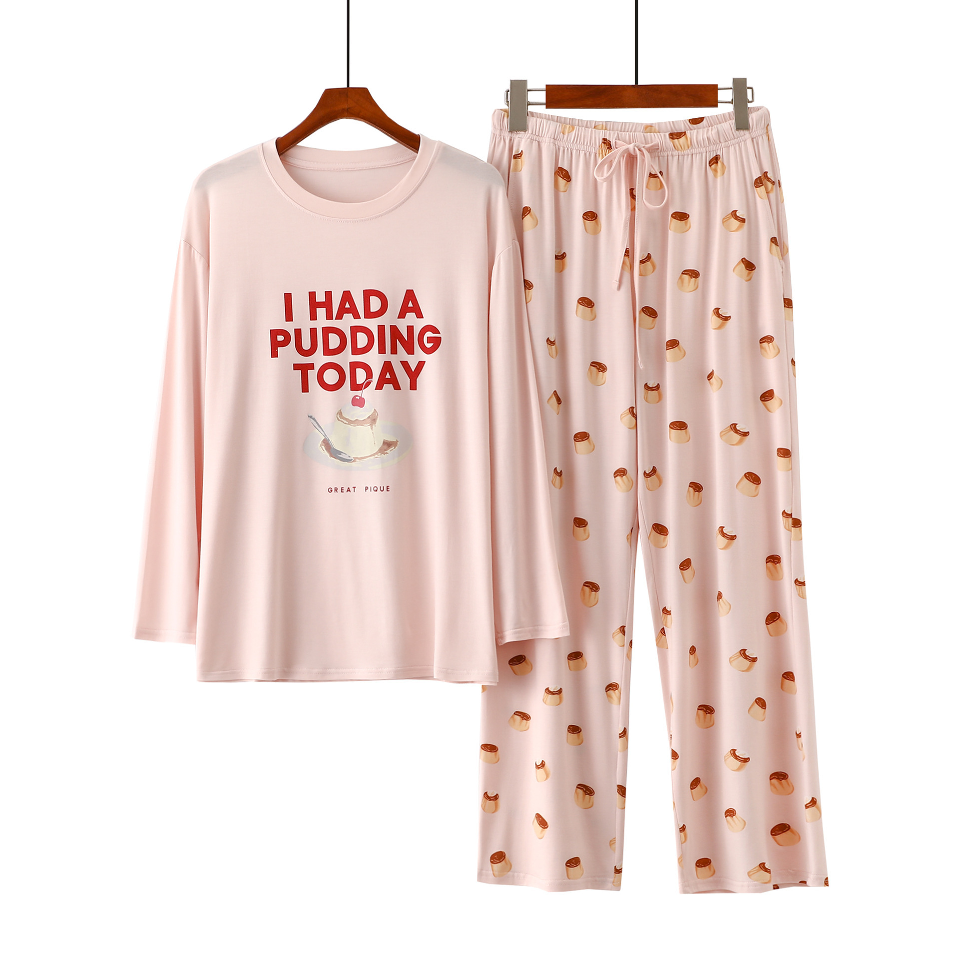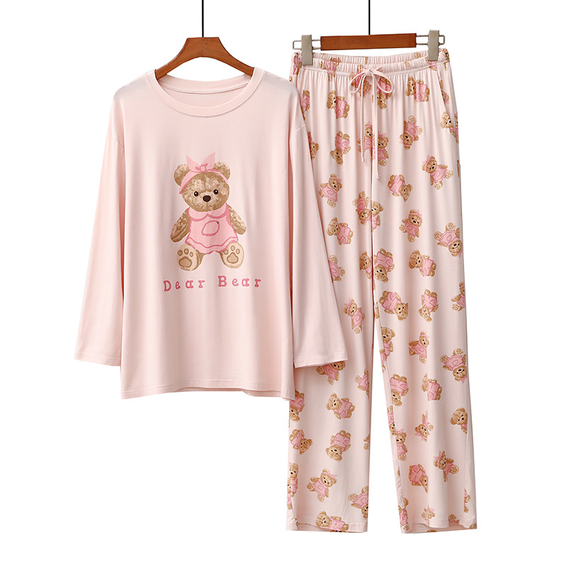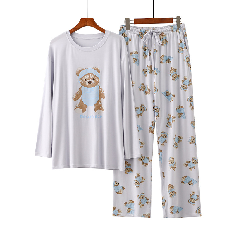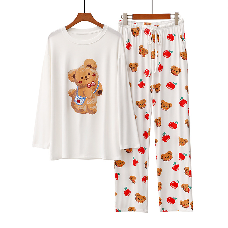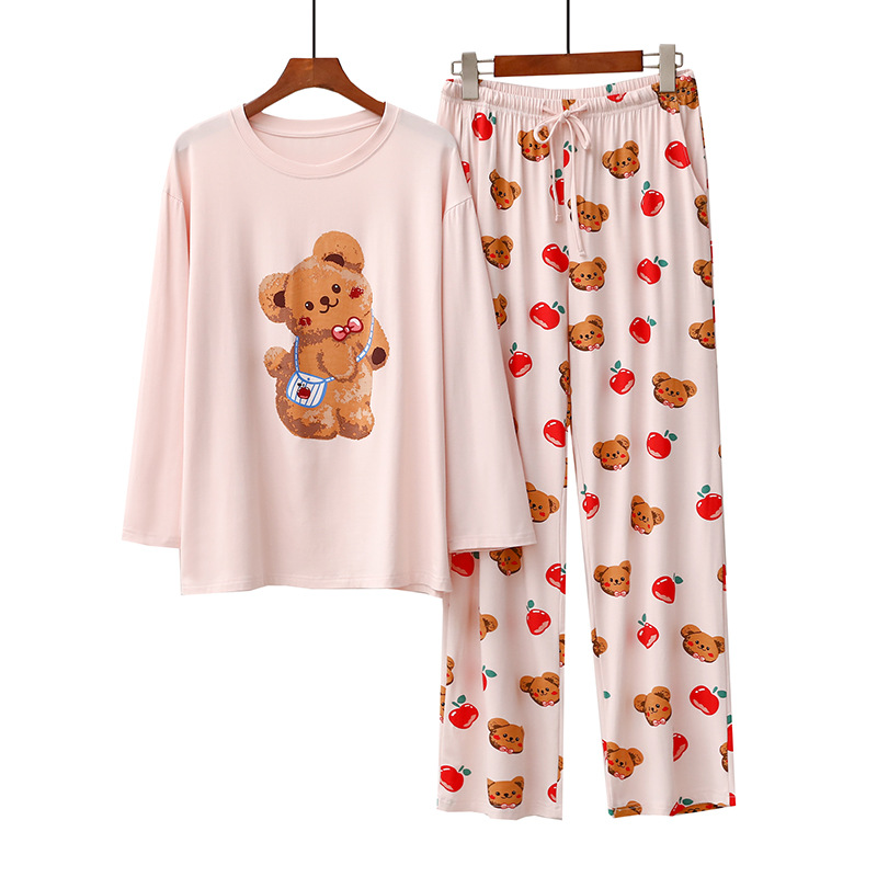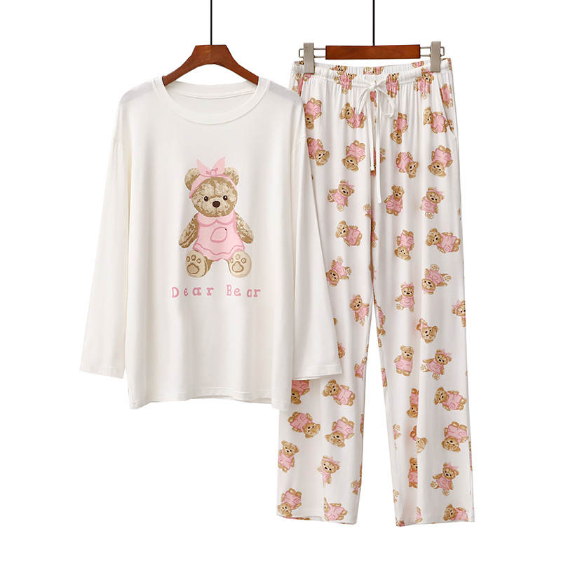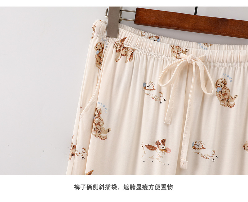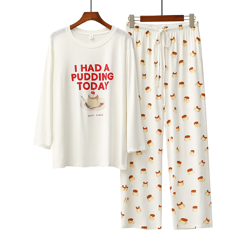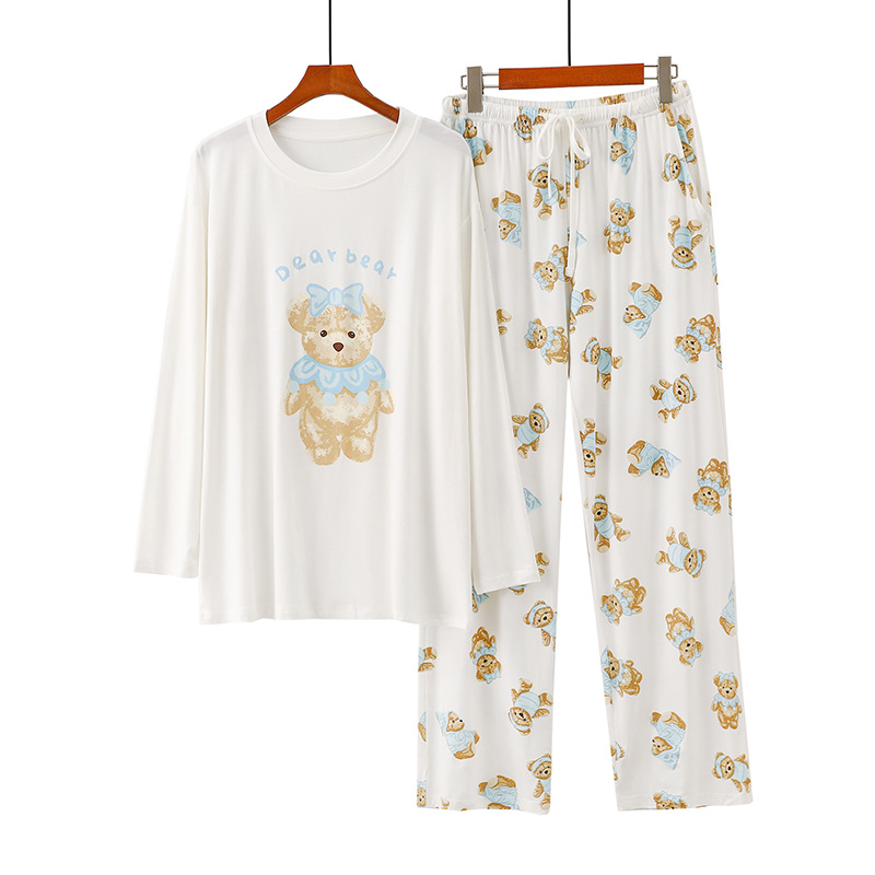 여성을위한 새로운 만화 아이스크림 개 잠옷 봄, 가을 긴팔 바지 라운드 넥 느슨한 홈웨어 세트 2024 신규스토어 가기