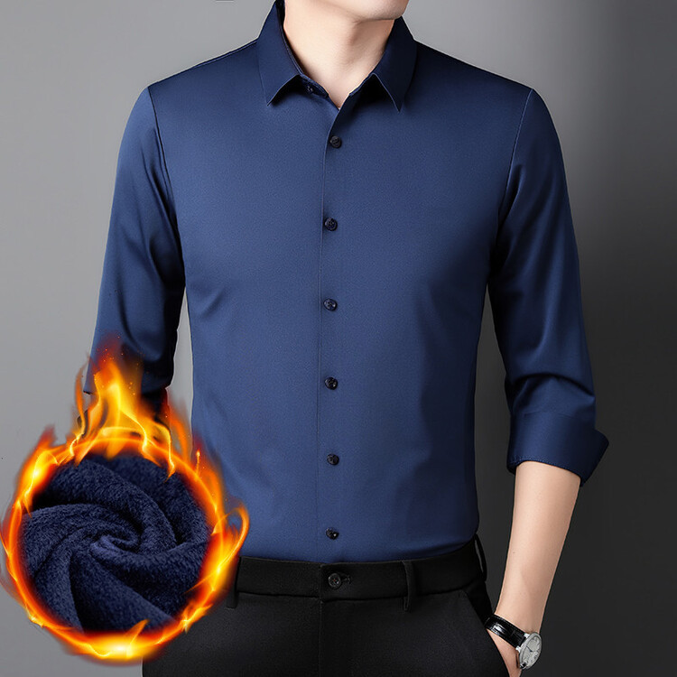 벨벳이 달린 겨울 셔츠, 남성용 긴팔 셔츠, 신축성 있고 주름 방지, 남성용 단색 패션 캐주얼 셔츠, 두꺼운 옷깃