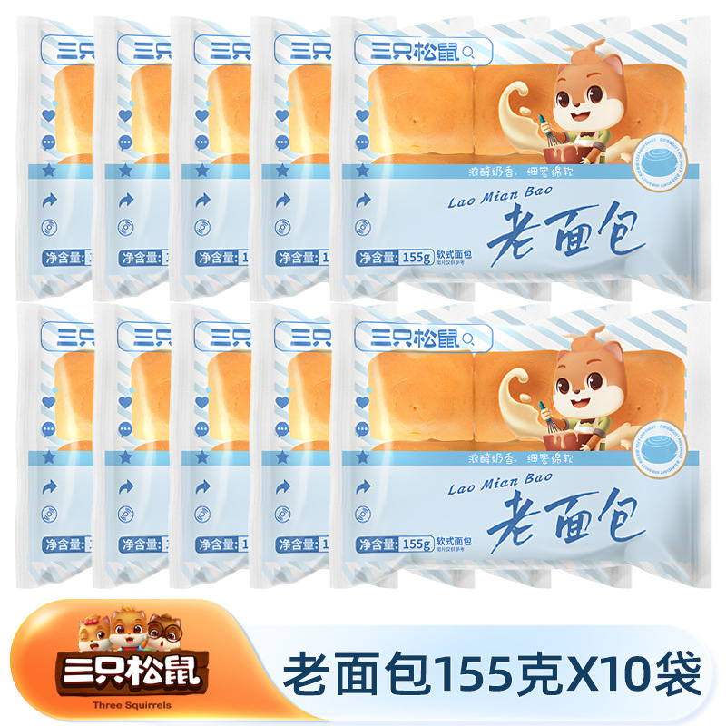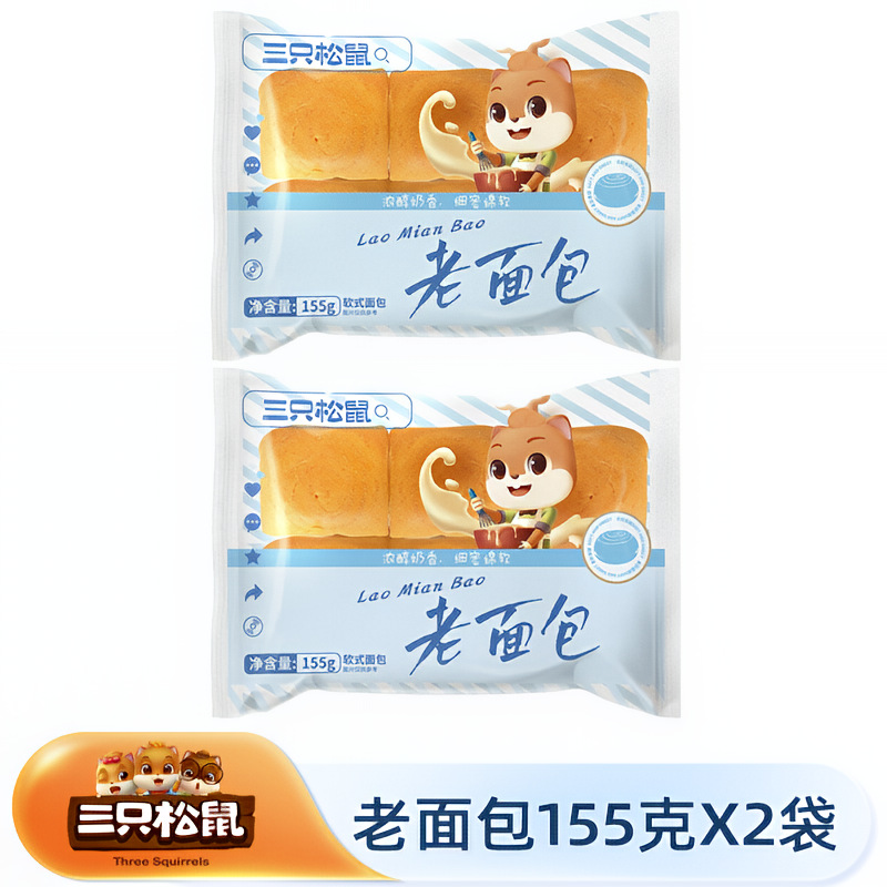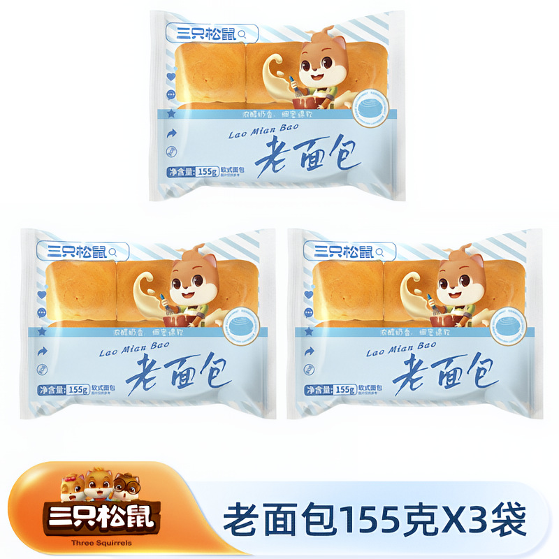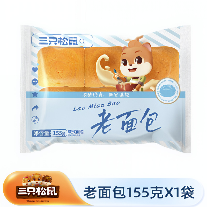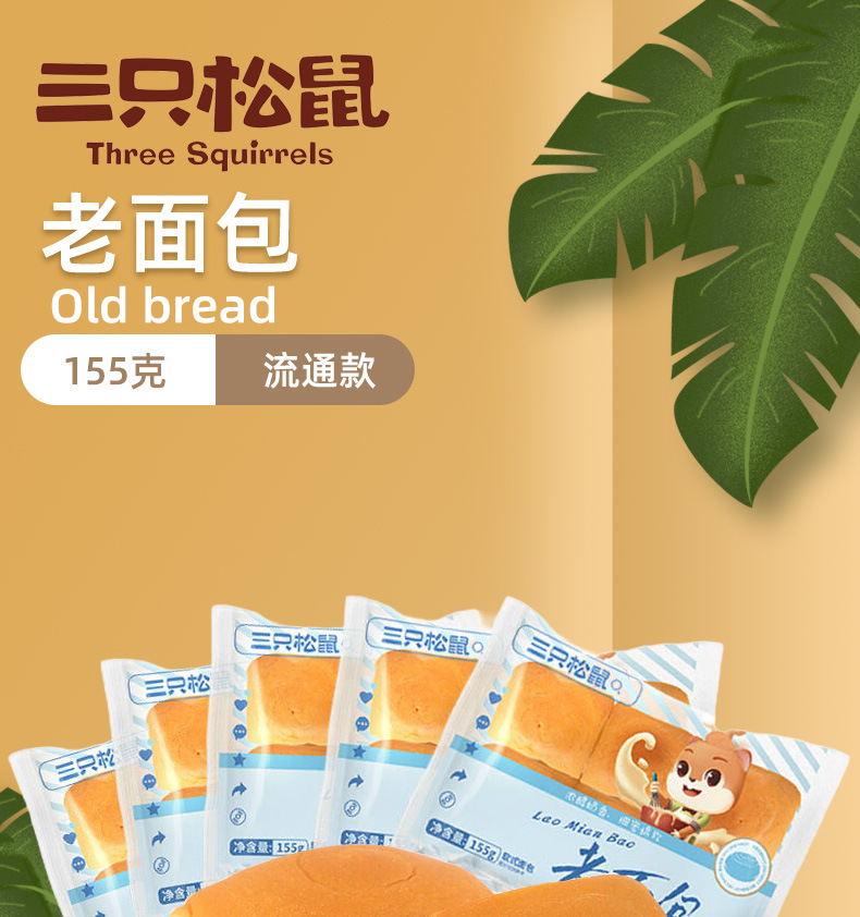 슈퍼마켓 쇼핑몰 도매 세 다람쥐 오래된 빵 155g 우유 맛 바삭한 빵 편리한 인스턴트 아침 식사 간식스토어 가기