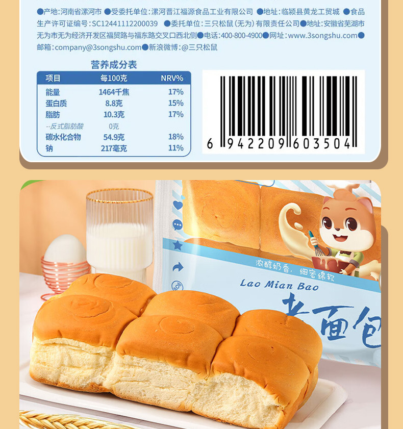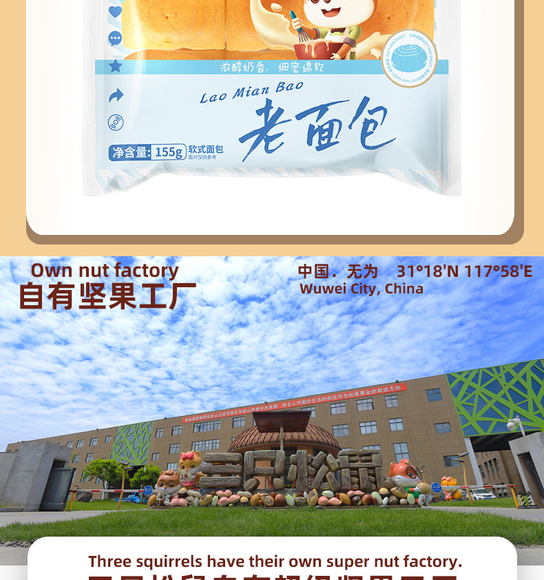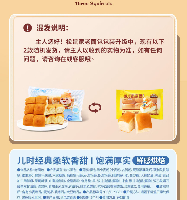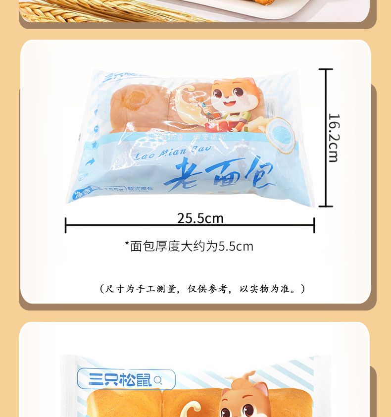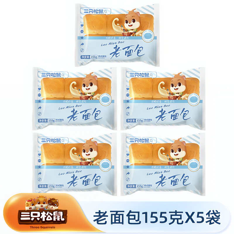 슈퍼마켓 쇼핑몰 도매 세 다람쥐 오래된 빵 155g 우유 맛 바삭한 빵 편리한 인스턴트 아침 식사 간식스토어 가기