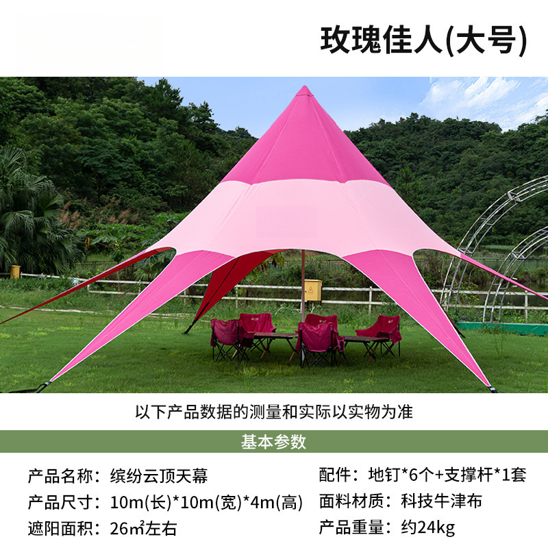야외 단일 피크 캐노피 텐팅 문어 캠핑 캠프 텐트 컬러 캐노피 오렌지 레드 행운의 머리