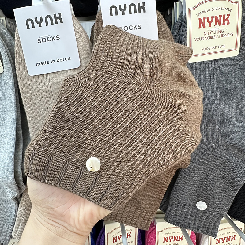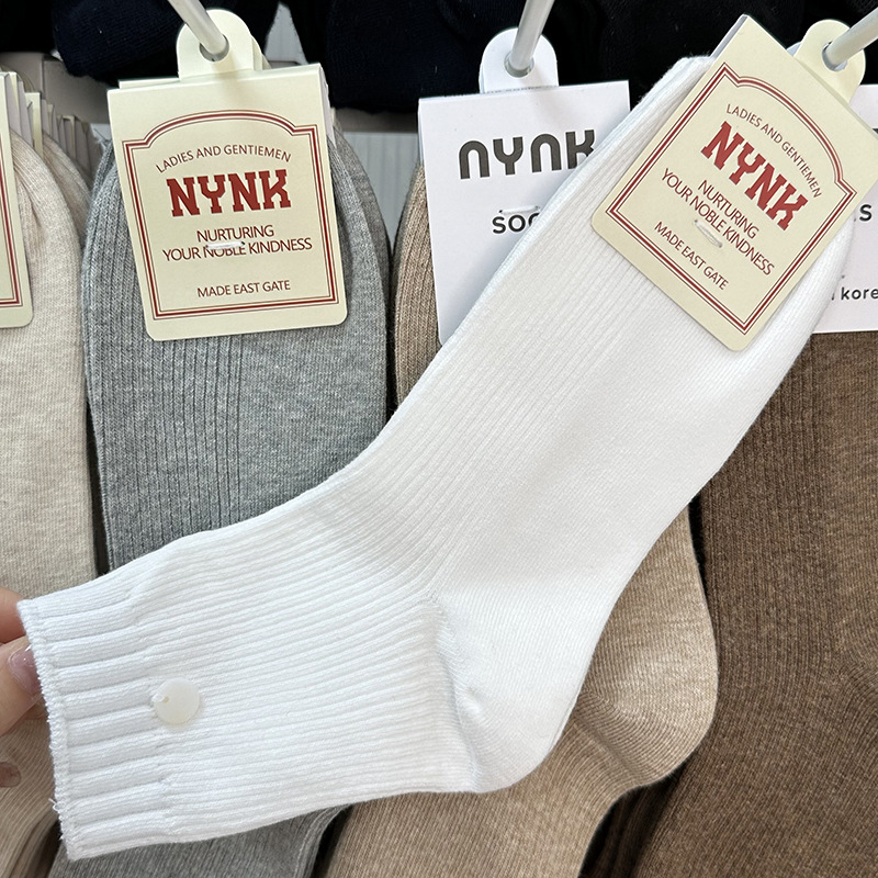 도매 새로운 단색 실 양말 버튼 디자인 한국 회색 양말 여성 양말 손으로 꿰매는면 양말 중간 튜브스토어 가기