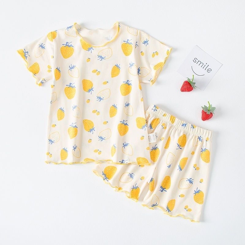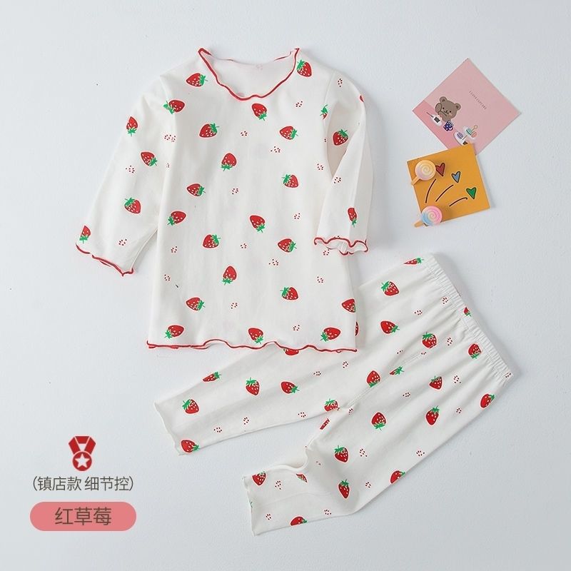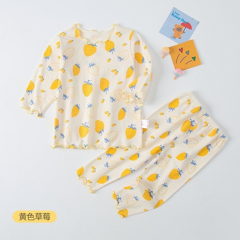 봄 가을 소녀 홈 의류 세트 아기의 서양식 어린이 맞춤형 브랜드 한국 스타일 딸기 꽃 가을 옷 바지 파자마