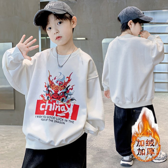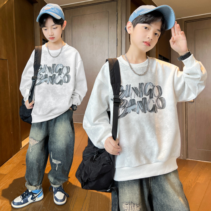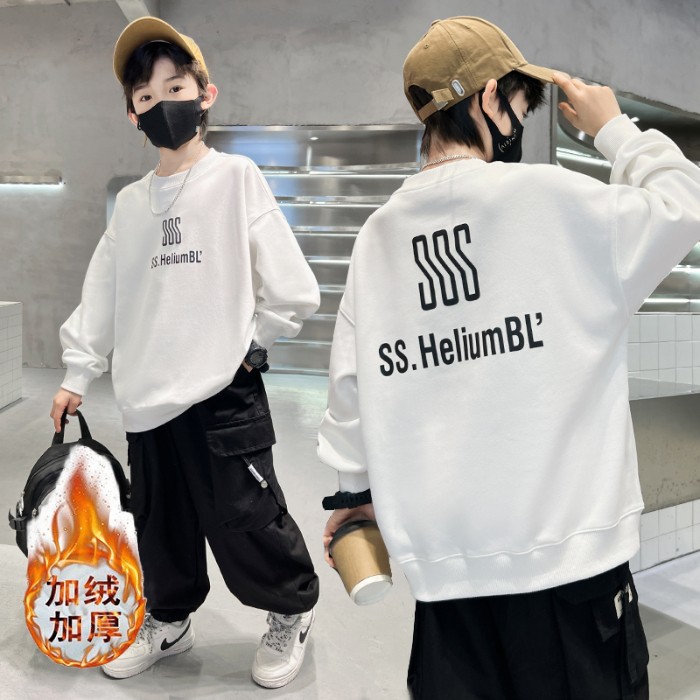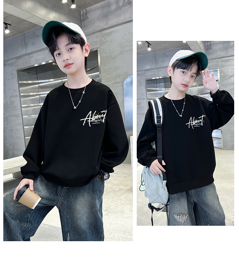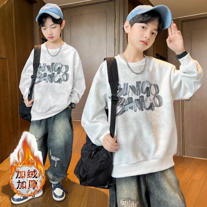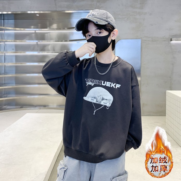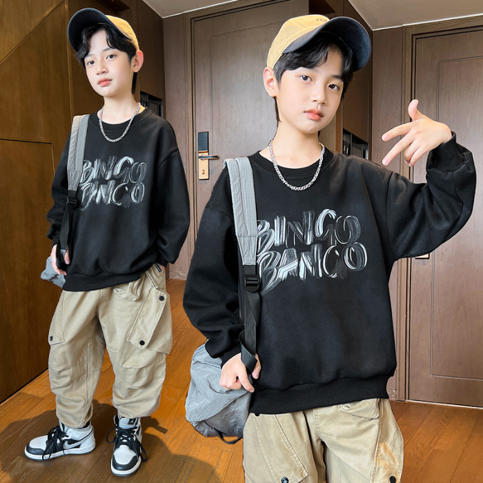남아용 패셔너블한 봄, 가을 순면 스웨트셔츠, 중대형 남아 및 아동용, 멋지고 트렌디하며 멋진 겨울 유행 벨벳 의류스토어 가기