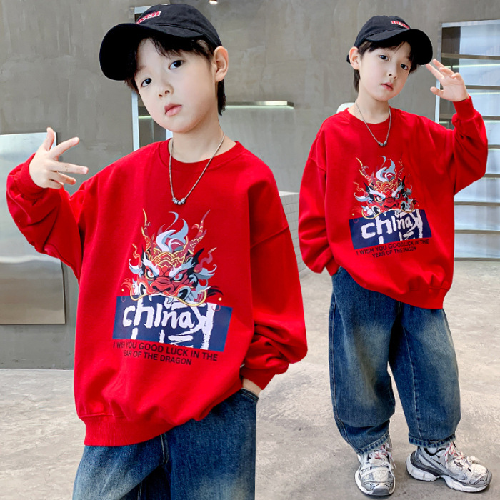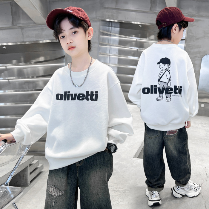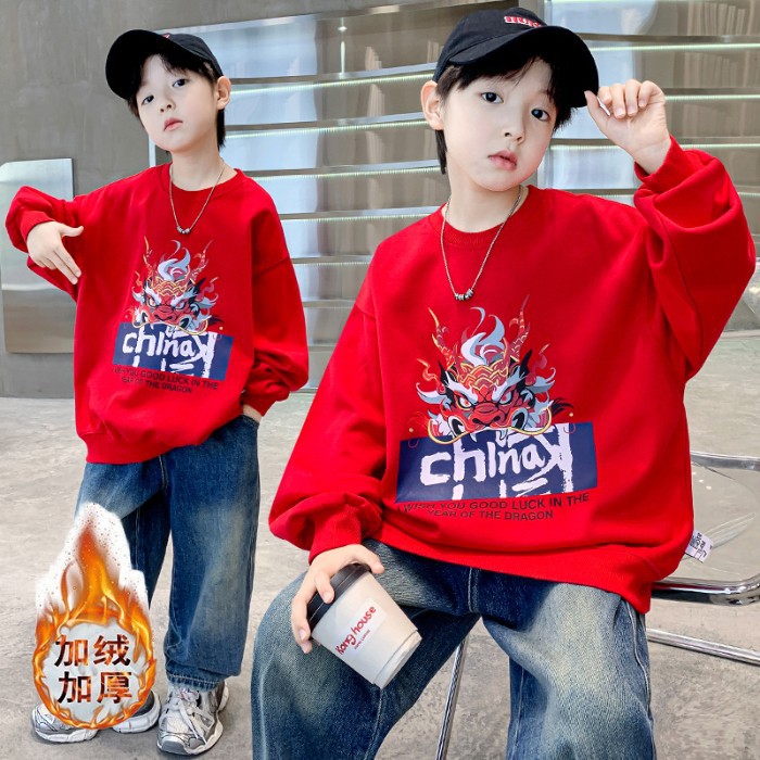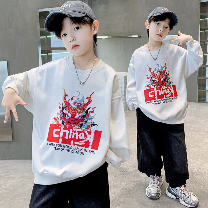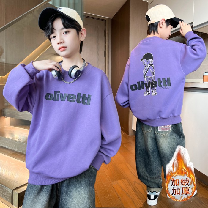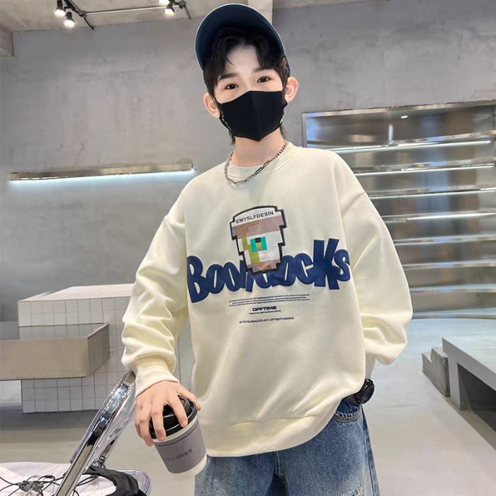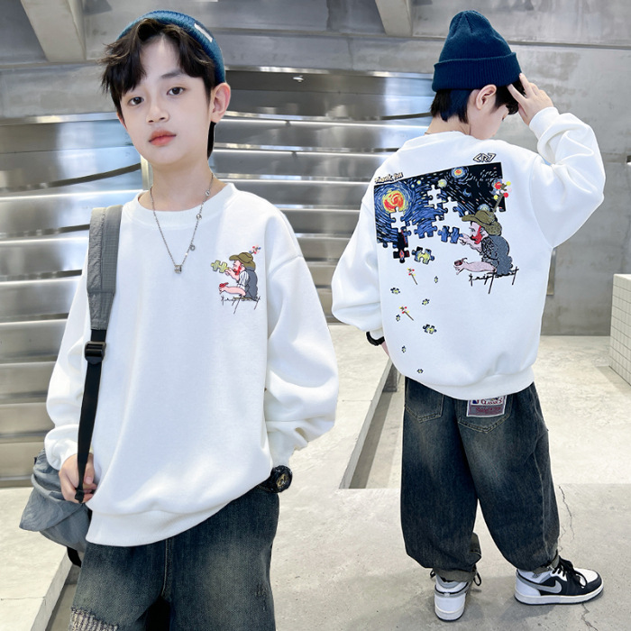 남아용 패셔너블한 봄, 가을 순면 스웨트셔츠, 중대형 남아 및 아동용, 멋지고 트렌디하며 멋진 겨울 유행 벨벳 의류스토어 가기
