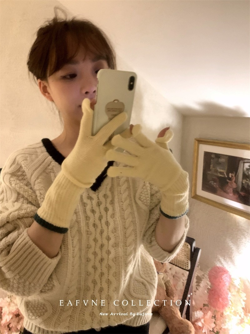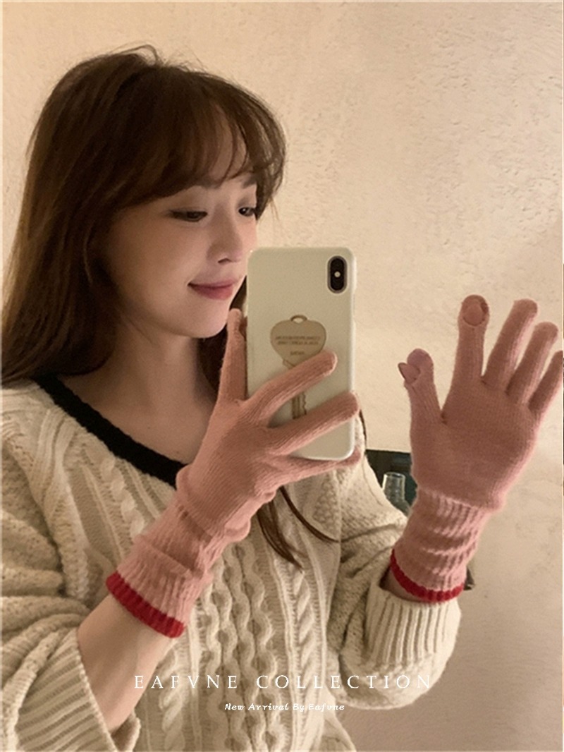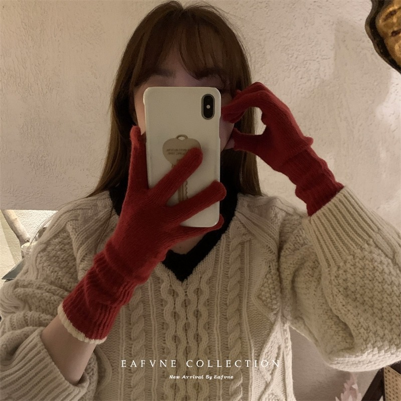 수출 주문 한국 블로거 가을과 겨울 따뜻한 장갑 여성의 손가락 ~ 터치스크린 캐시미어 애호가에 구멍이있는 다섯 손가락스토어 가기
