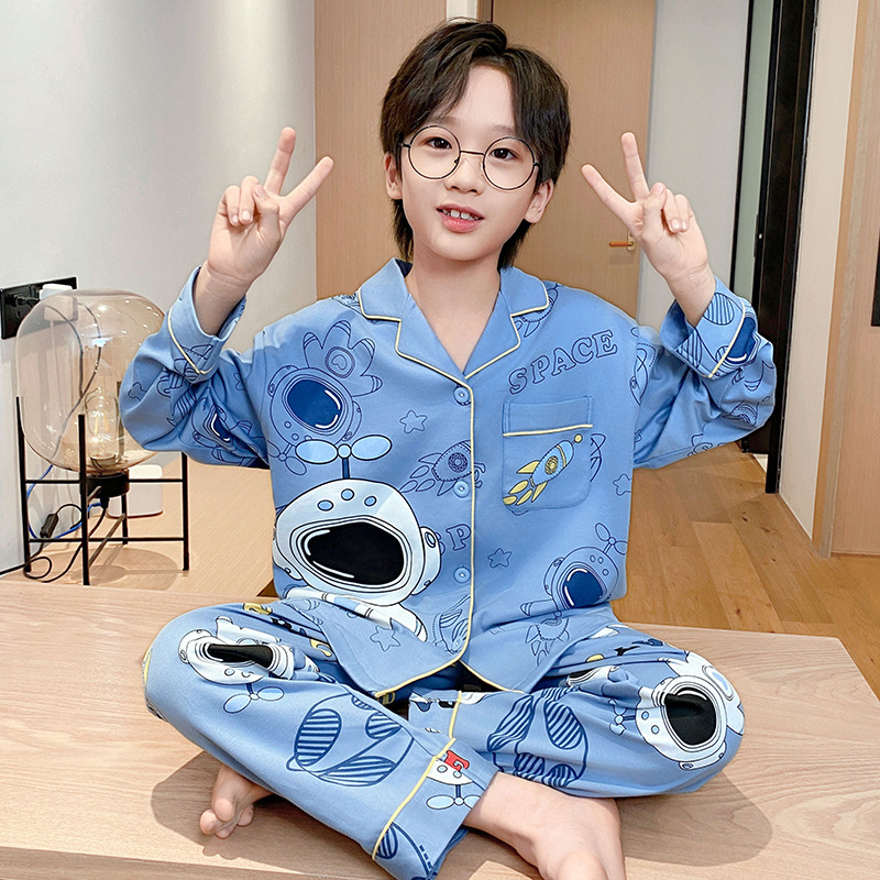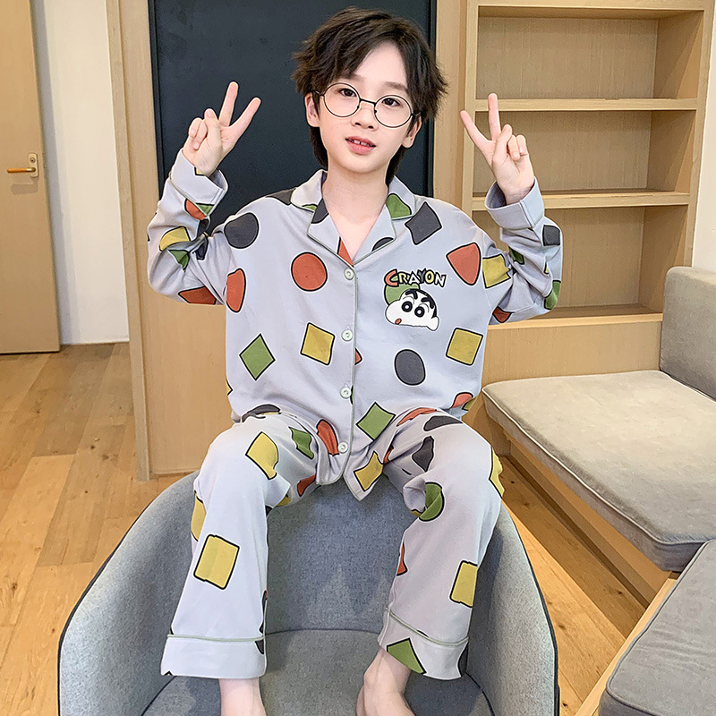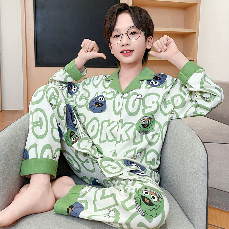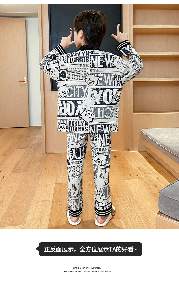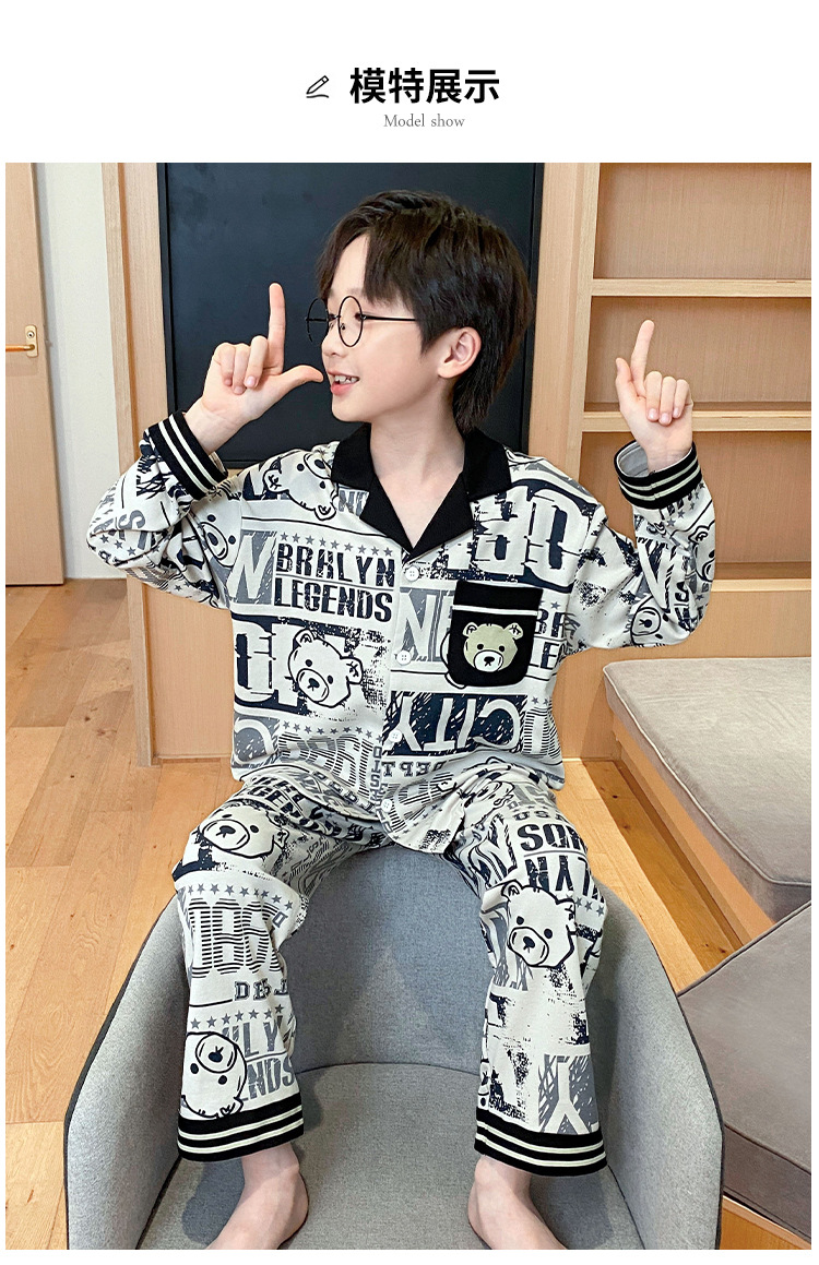 가을 2024 년 새 소년 잠옷 만화 어린이 면 긴 소매 세트 소년의 봄과 가을 카디건 홈 옷스토어 가기