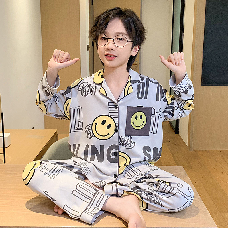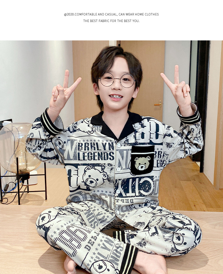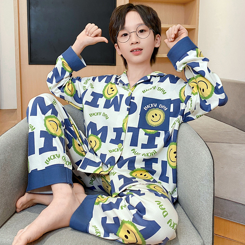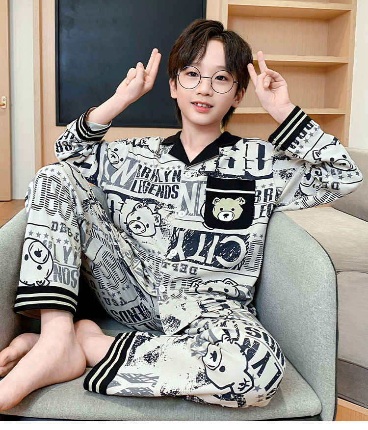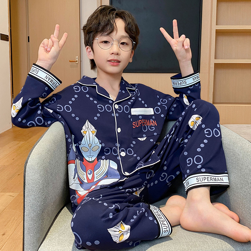 가을 2024 년 새 소년 잠옷 만화 어린이 면 긴 소매 세트 소년의 봄과 가을 카디건 홈 옷