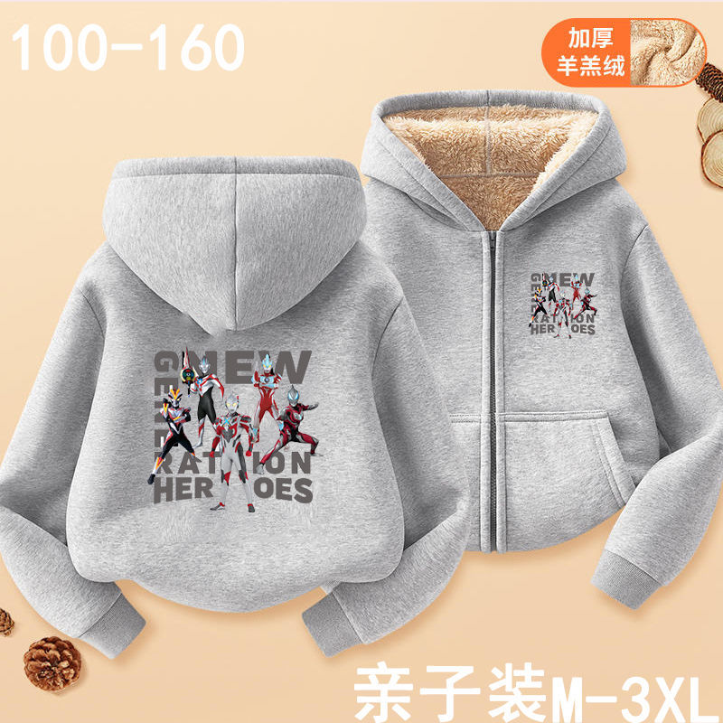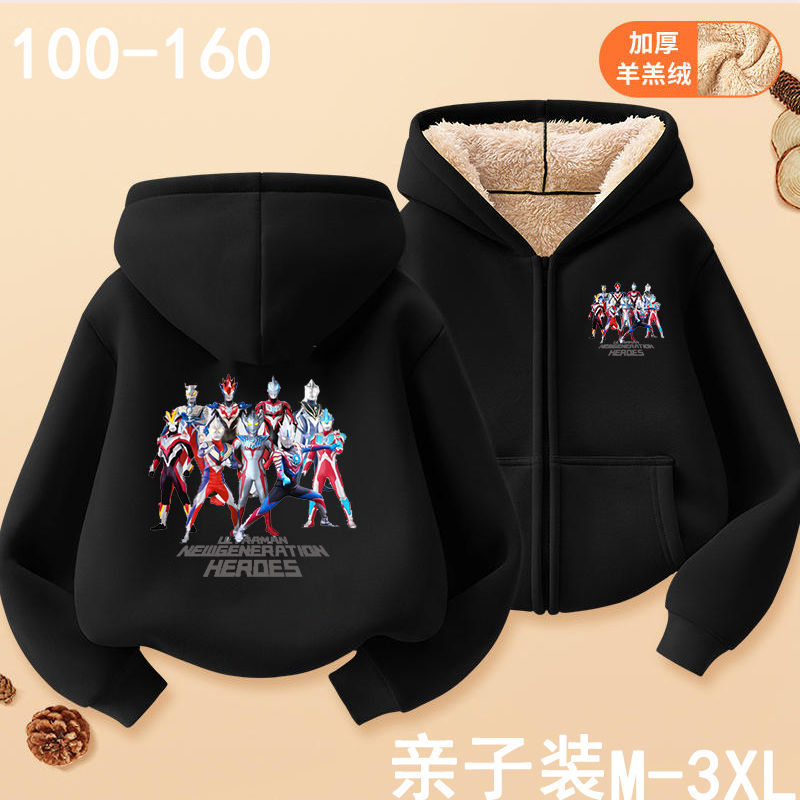 아버지와 아들을위한 가을과 겨울 카디건 후드 스웨터 부모-아동은 소년과 어린이를위한 Ultraman Saiwen Degas를 착용합니다. 지퍼 스웨터 재킷