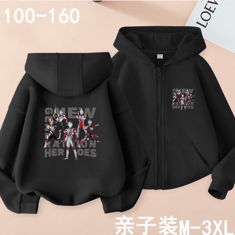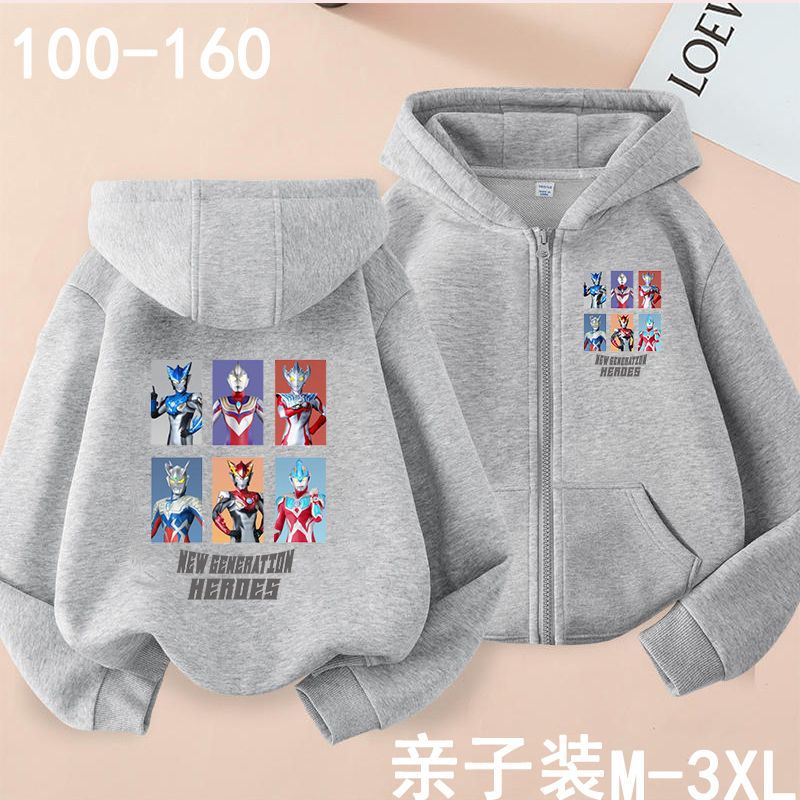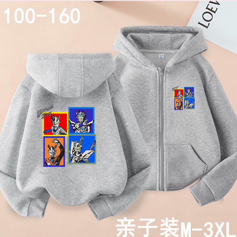 아버지와 아들을위한 가을과 겨울 카디건 후드 스웨터 부모-아동은 소년과 어린이를위한 Ultraman Saiwen Degas를 착용합니다. 지퍼 스웨터 재킷스토어 가기