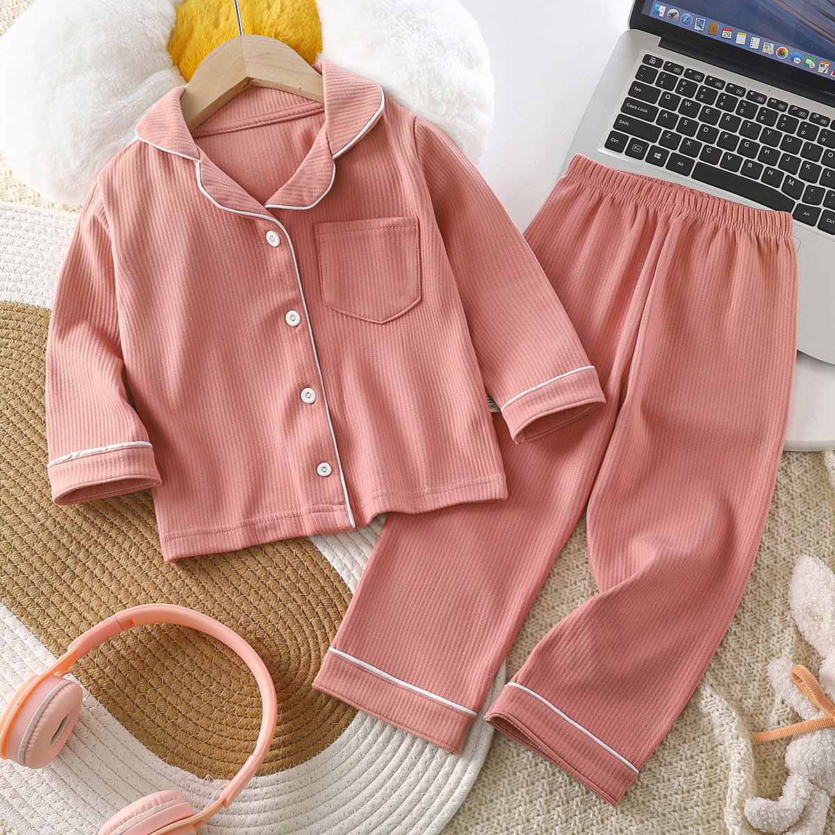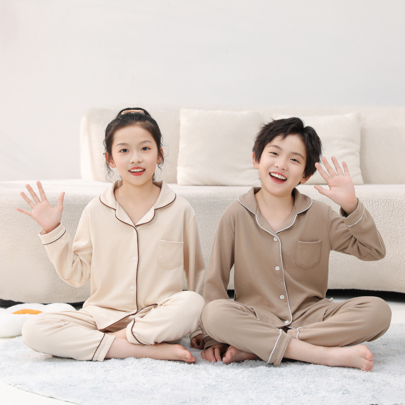 어린이 잠옷 가을 두꺼운 벨벳 따뜻한 옷 소년 카디건 에어컨 소녀 중 큰 어린이 가정 옷 세트스토어 가기