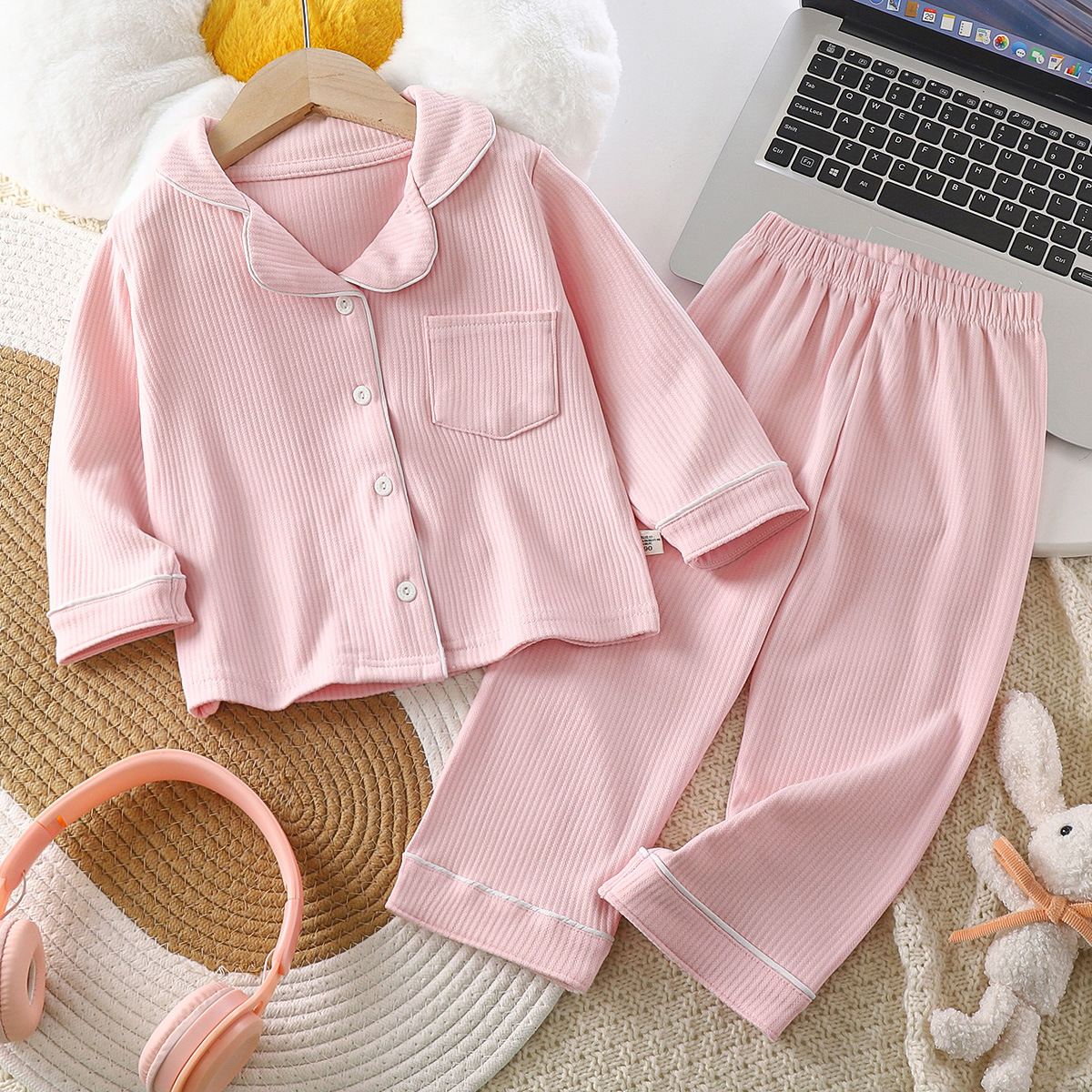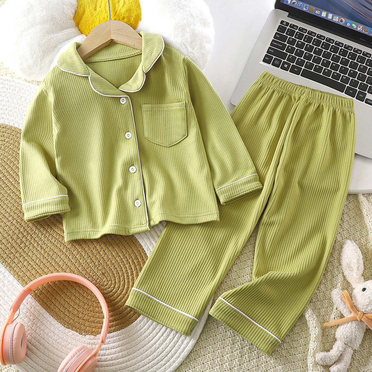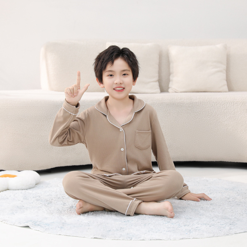 어린이 잠옷 가을 두꺼운 벨벳 따뜻한 옷 소년 카디건 에어컨 소녀 중 큰 어린이 가정 옷 세트