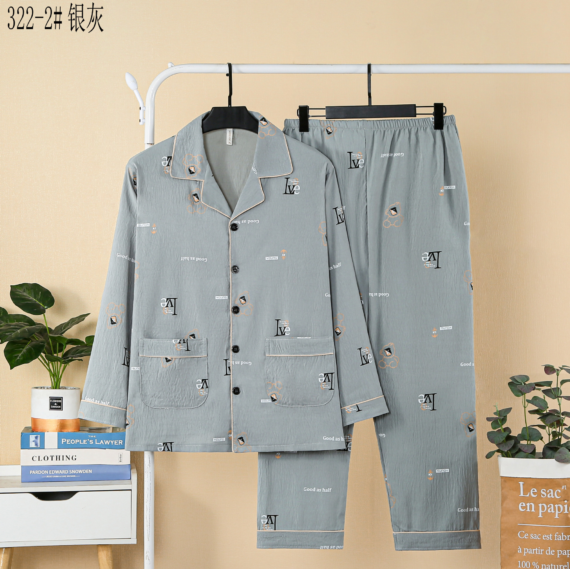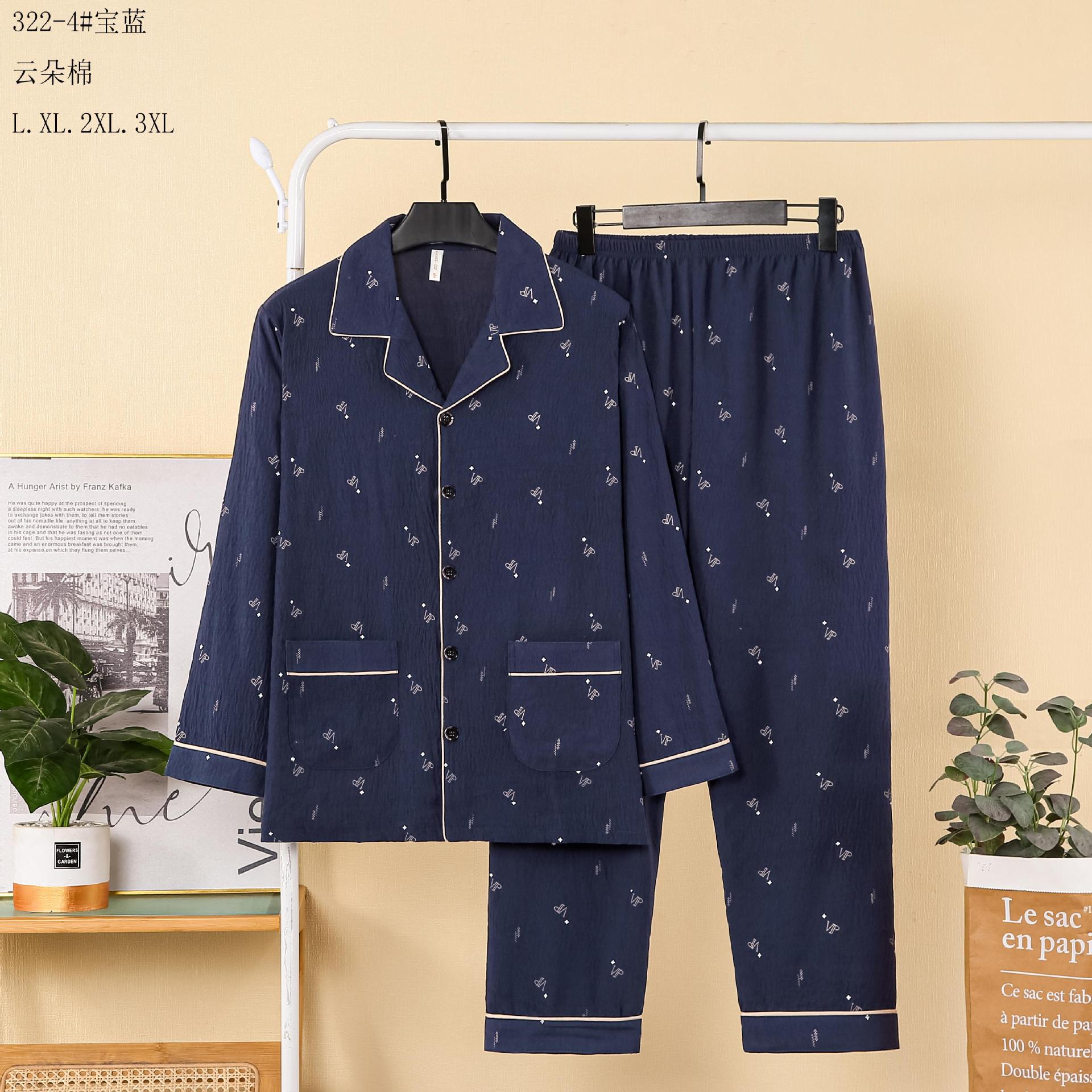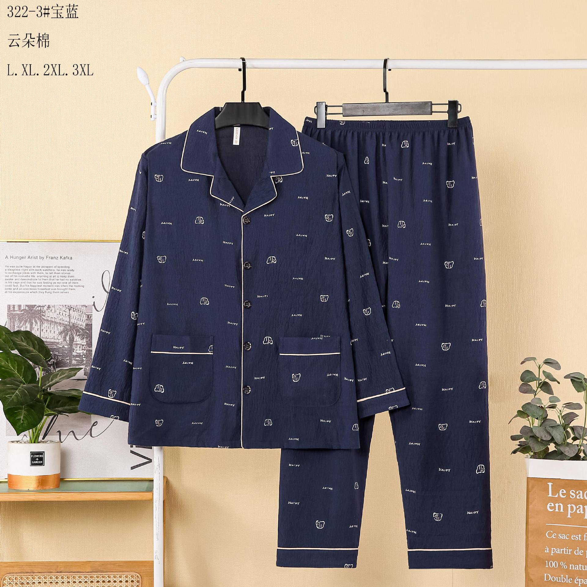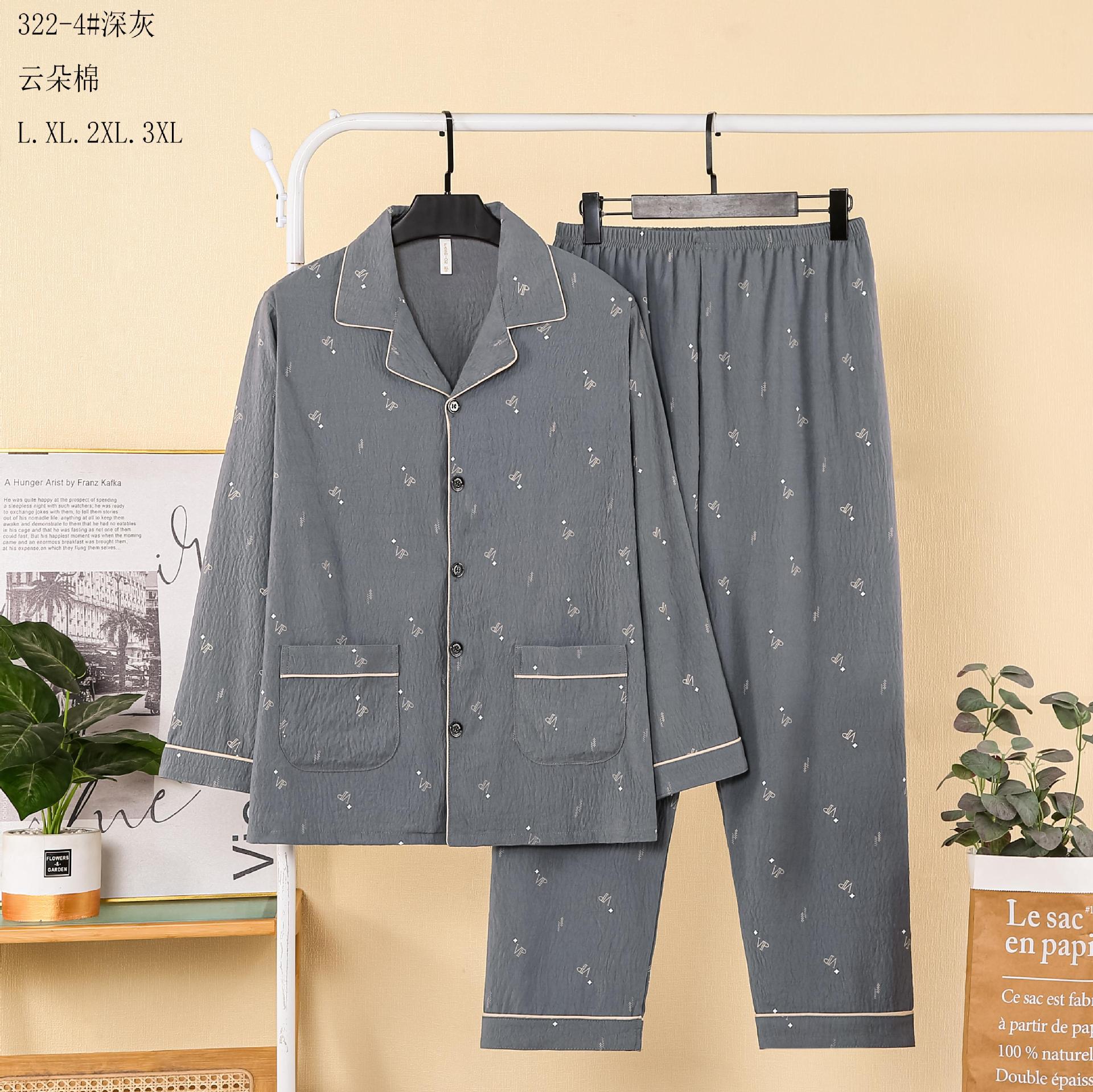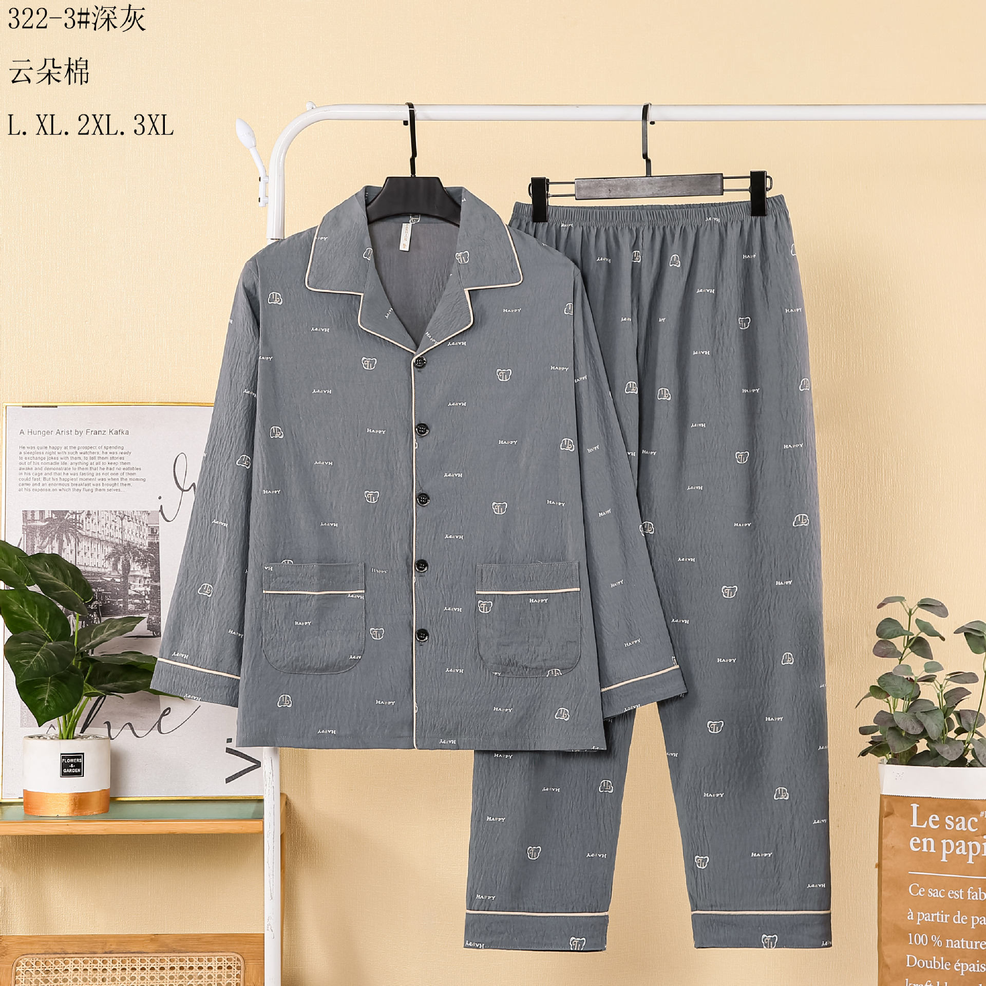 한국식 가을 새로운 도착 남자 잠옷 구름 면 카디건 긴 소매 캐주얼 느슨한 플러스 사이즈 의류스토어 가기