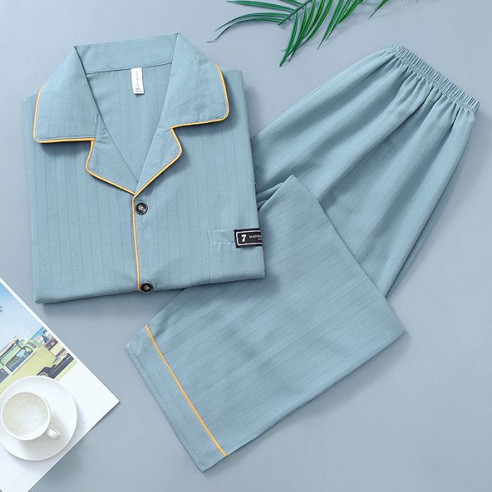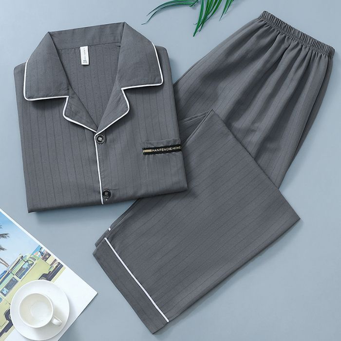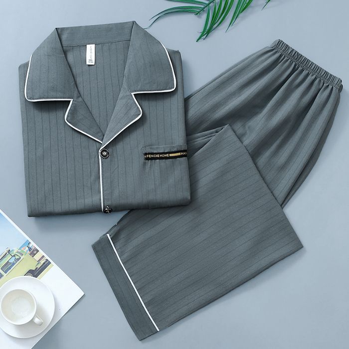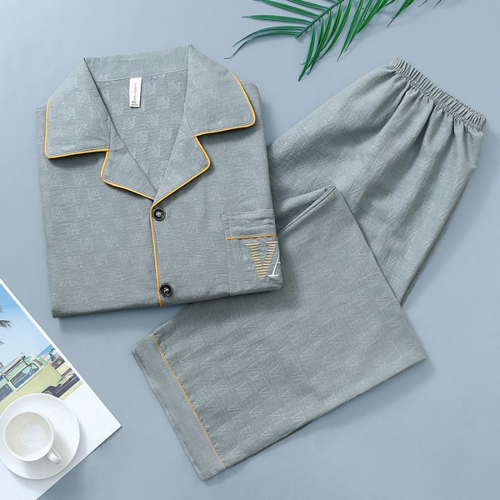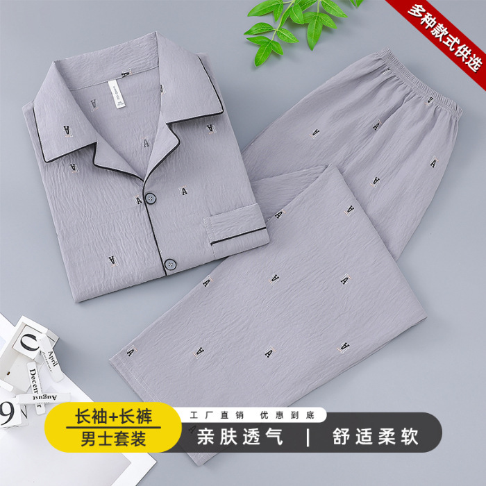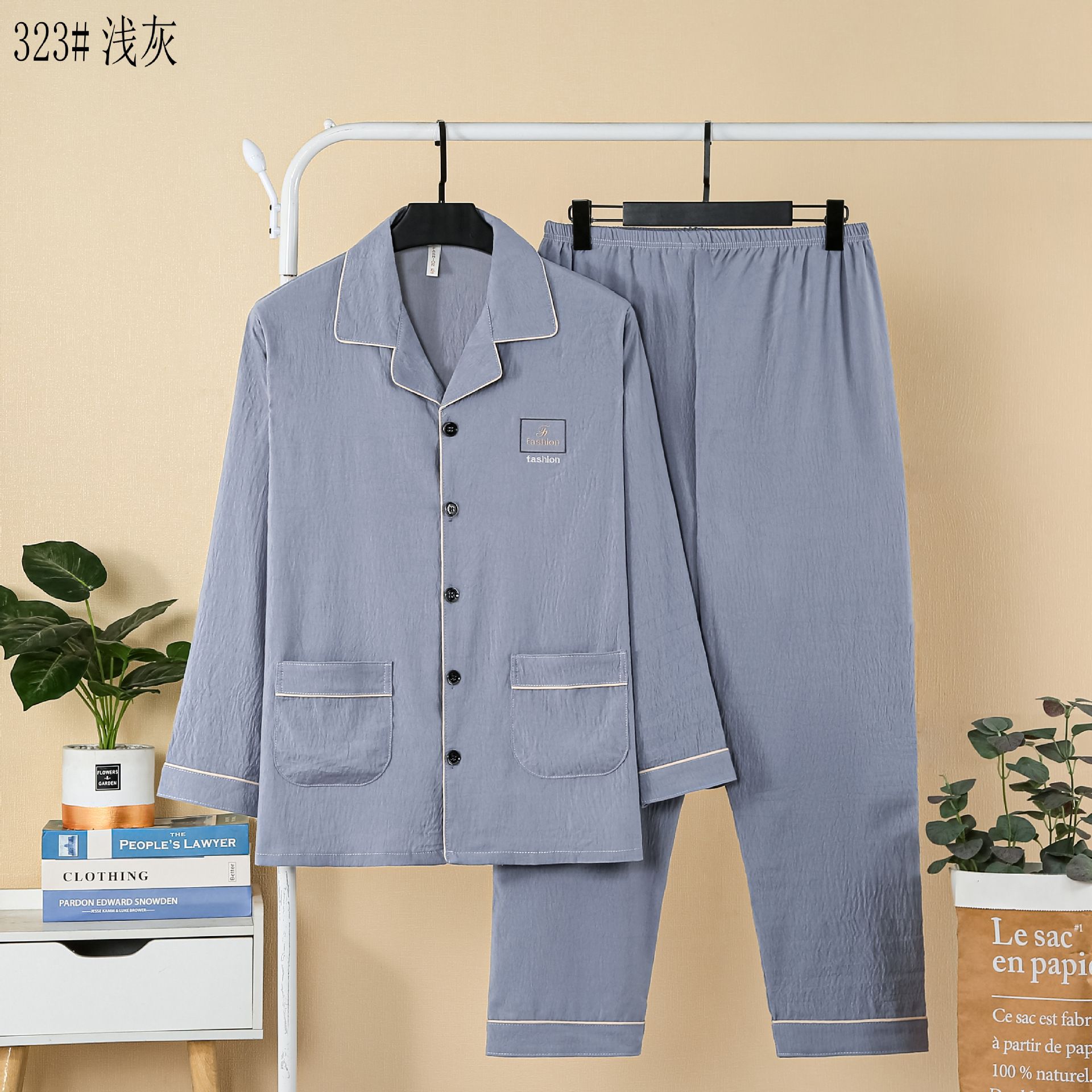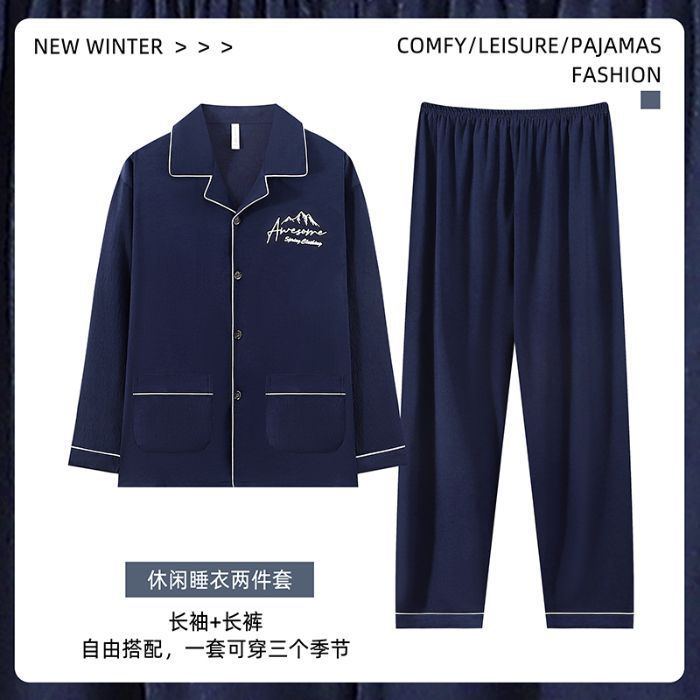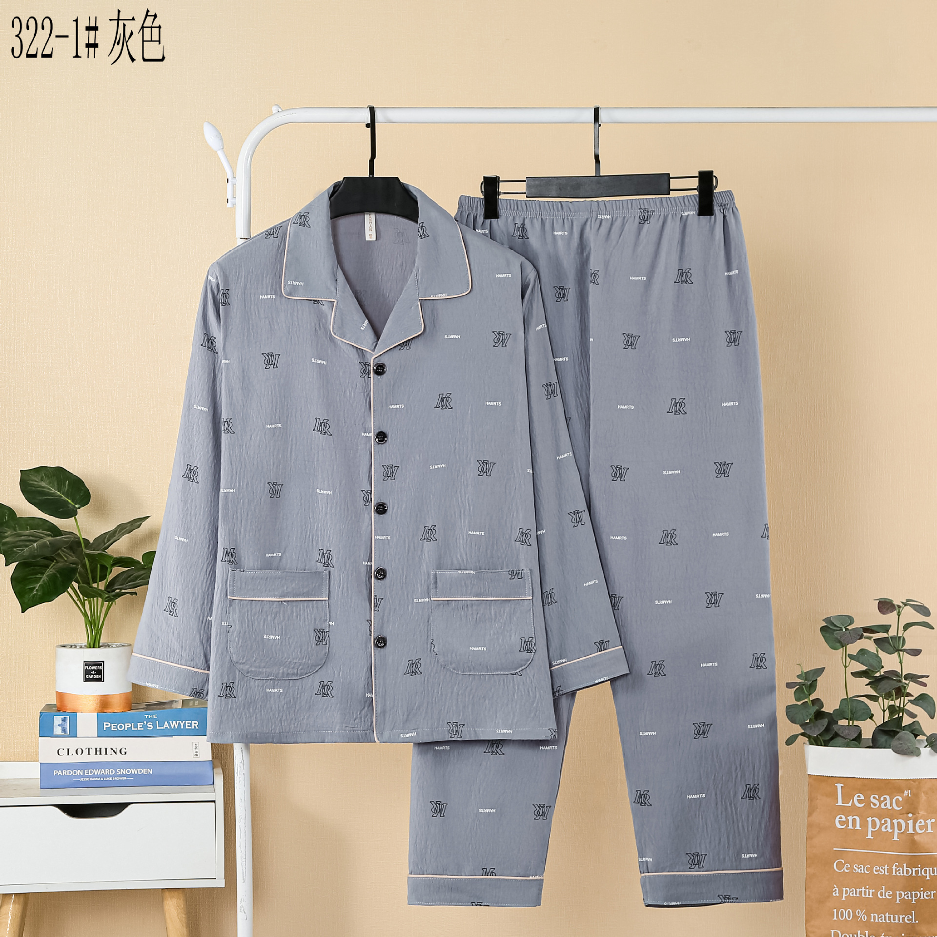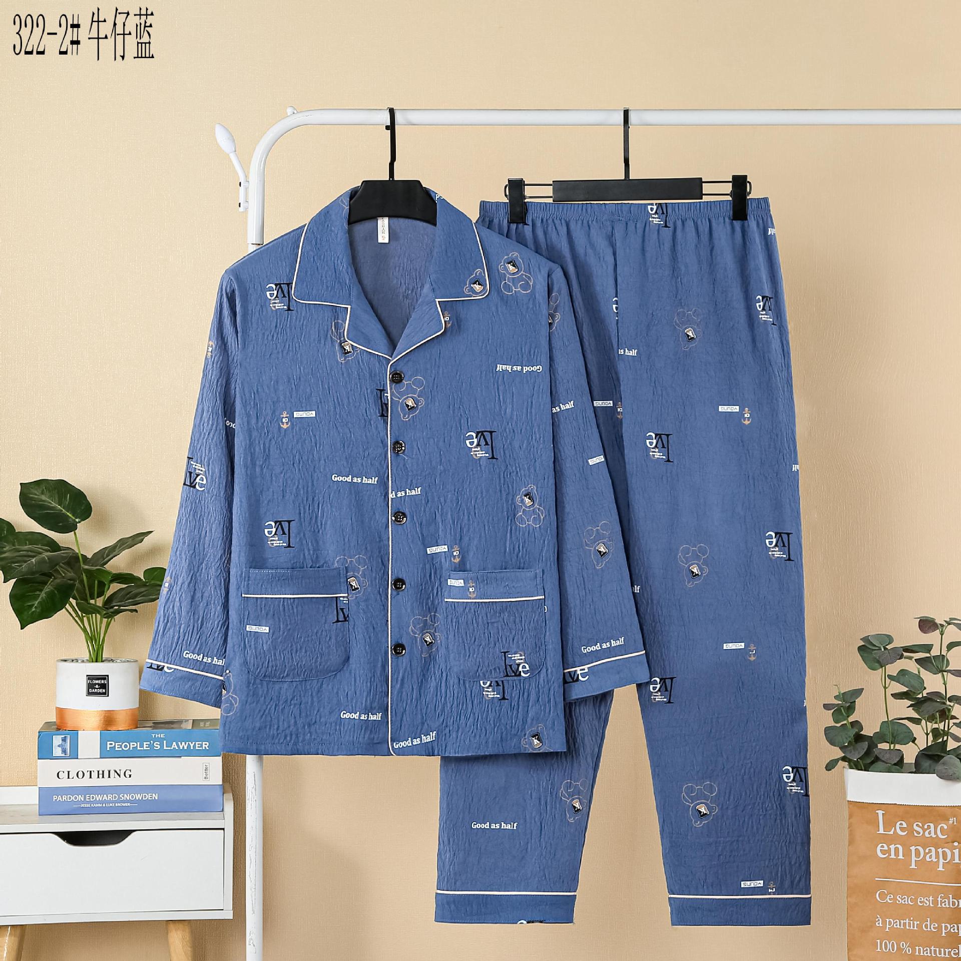 한국식 가을 새로운 도착 남자 잠옷 구름 면 카디건 긴 소매 캐주얼 느슨한 플러스 사이즈 의류스토어 가기