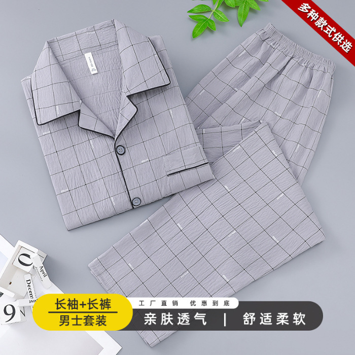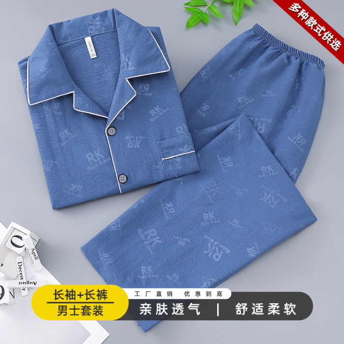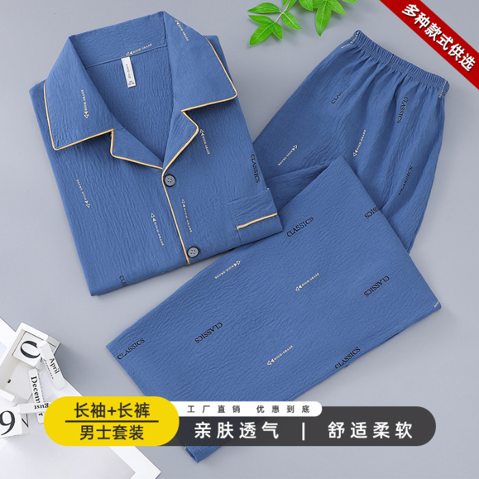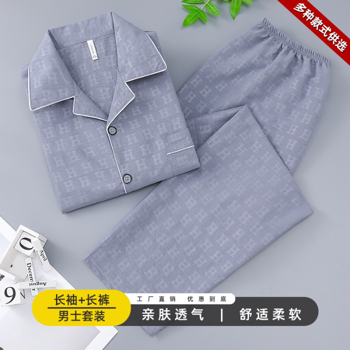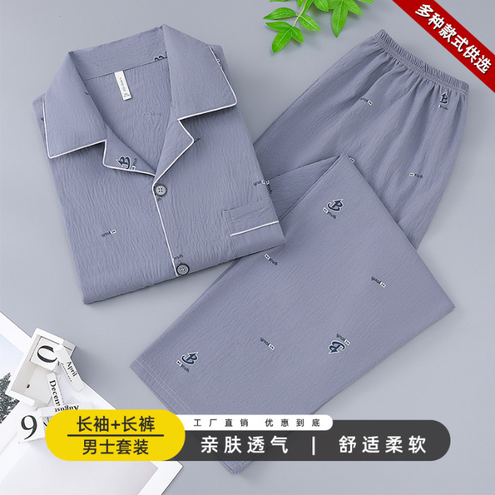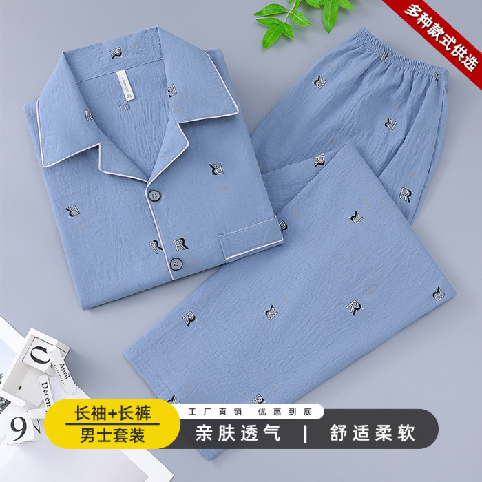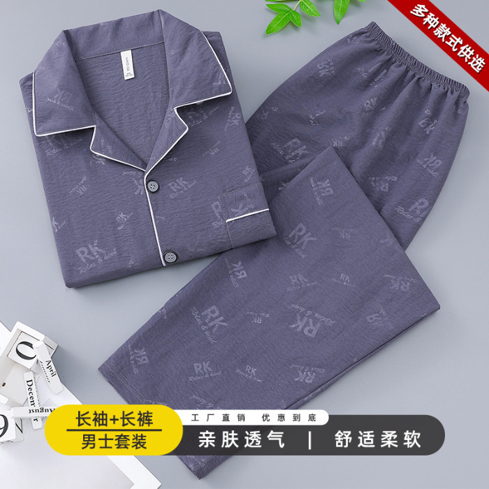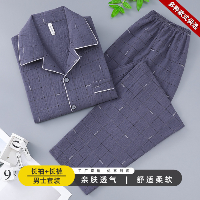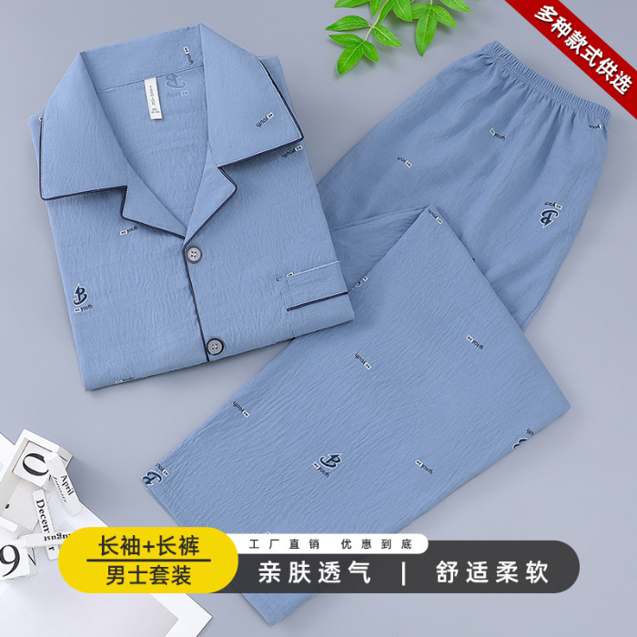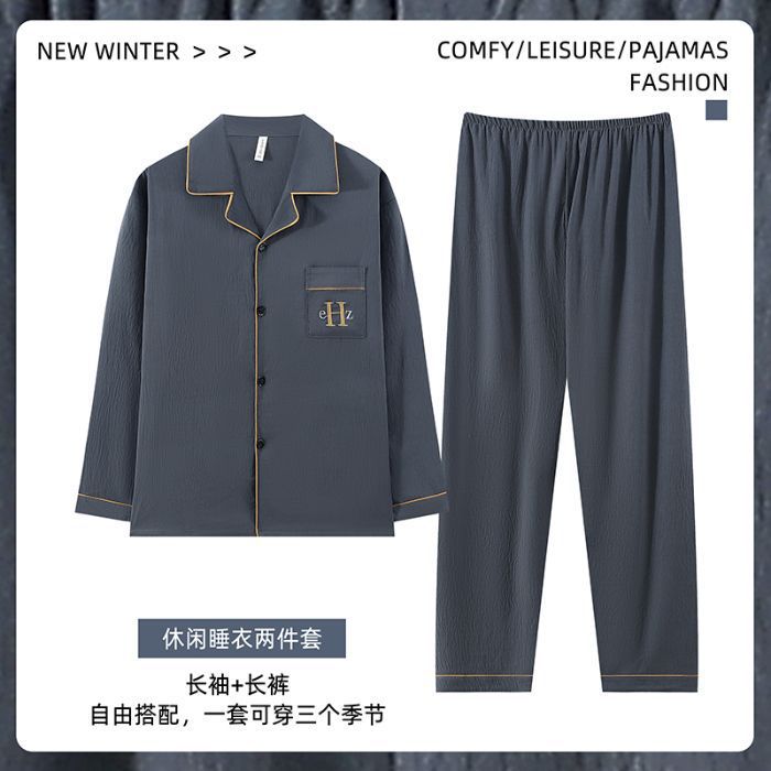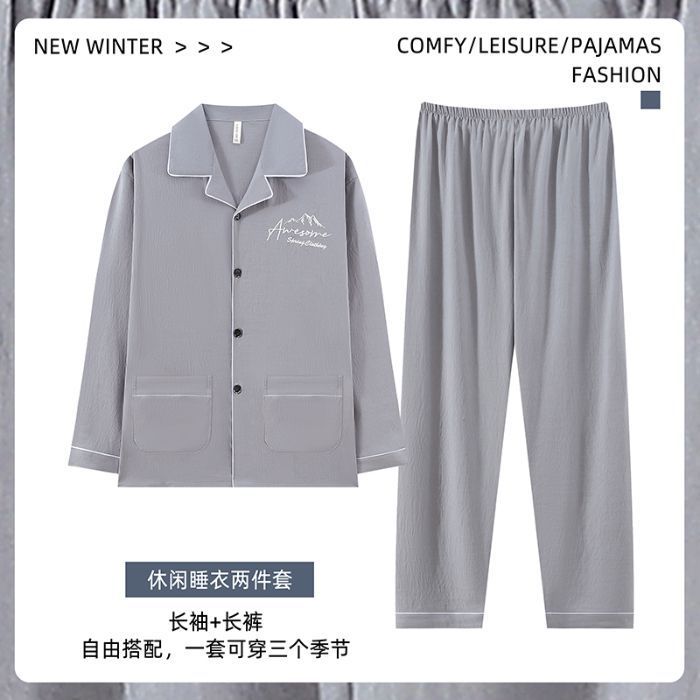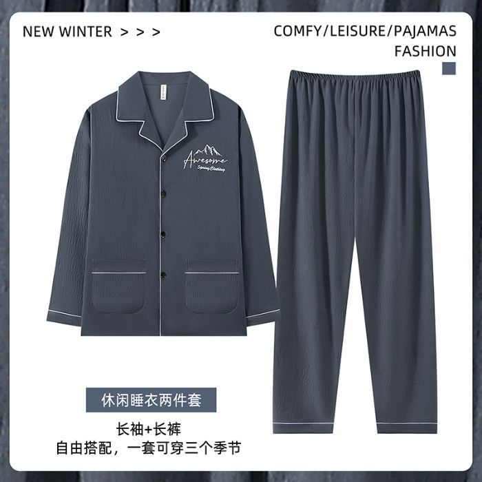 韩版秋新款男士睡衣云朵棉开衫长袖休闲宽松大码可外穿家居