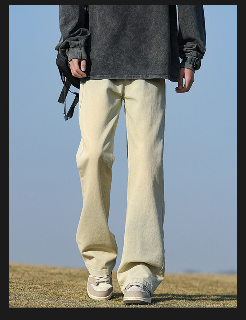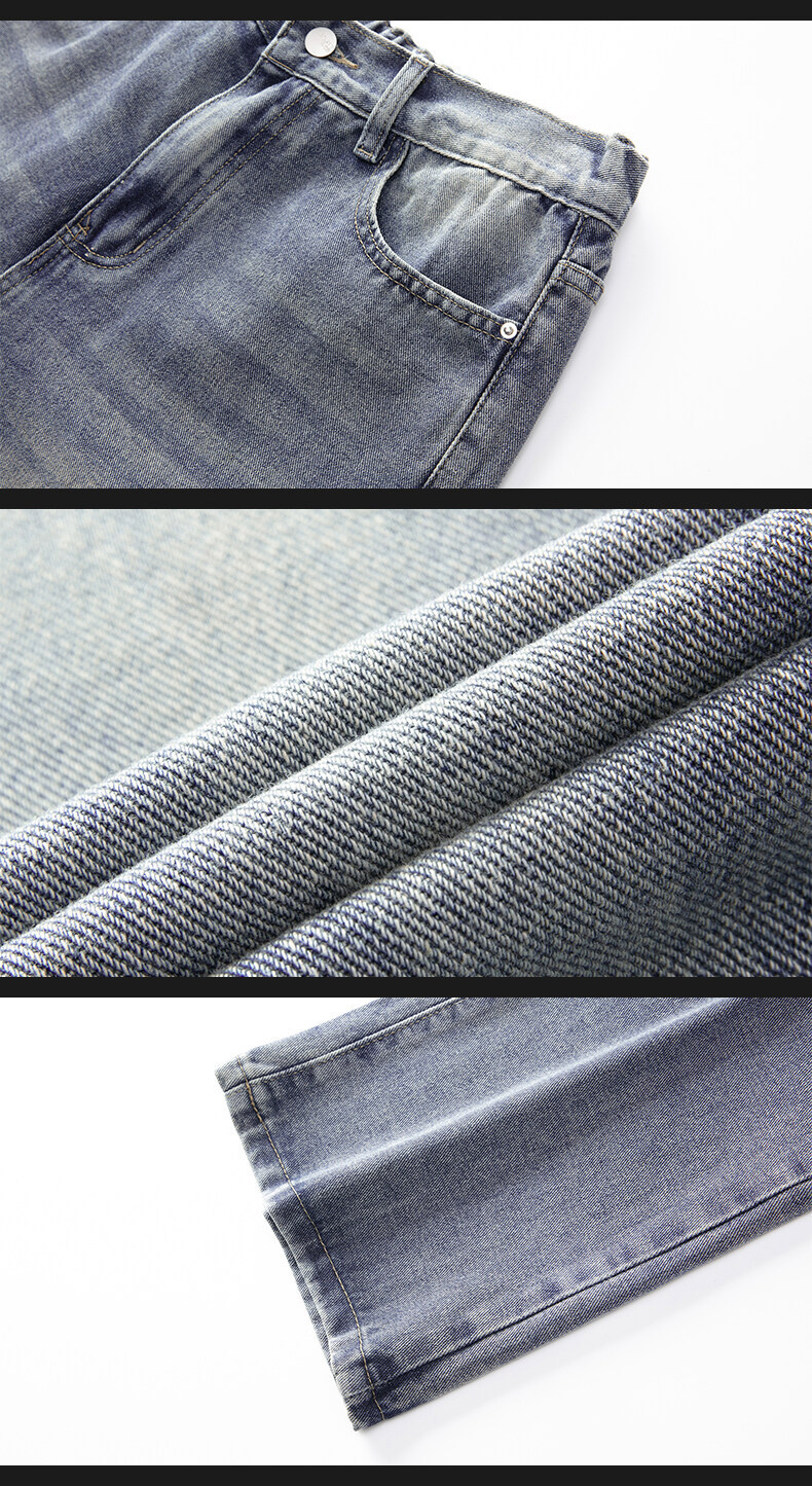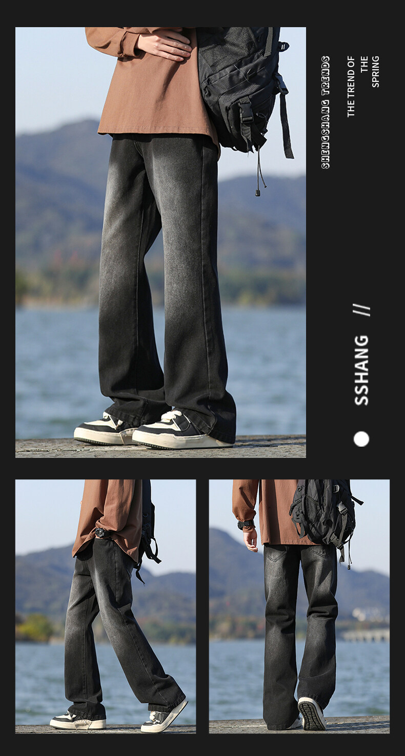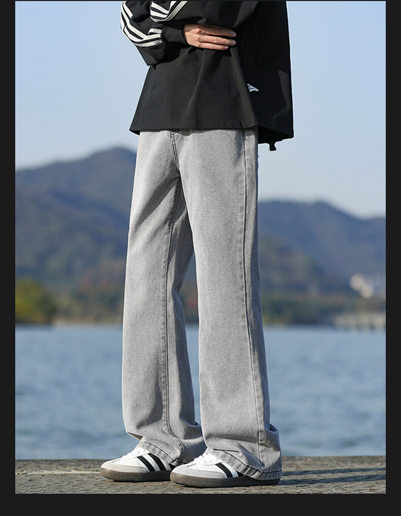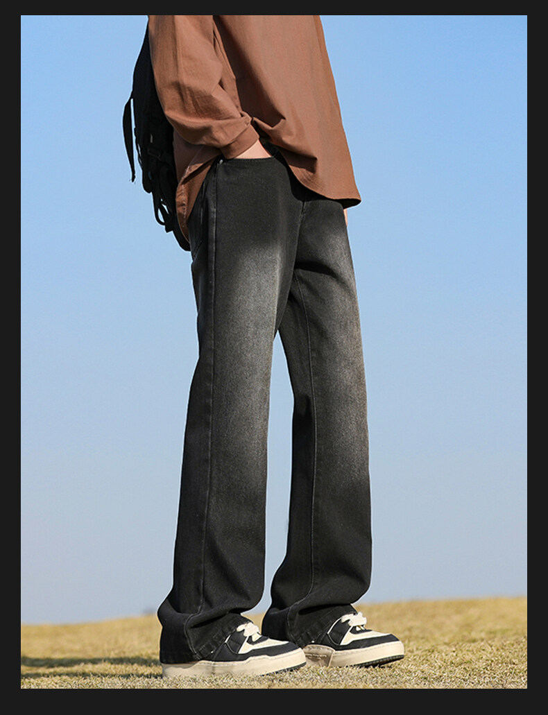 미국 레트로 스타일의 약간 벌어진 레그라인의 데님 팬츠, 청소년 남성용 기모 안감의 루즈핏 스트레이트 팬츠, 중학생용 하이 스트리트 스타일 롱 팬츠스토어 가기