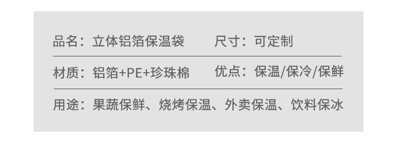 두꺼운 일회용 3 차원 단열 가방 알루미늄 호일 테이크 아웃 케이터링 익스프레스 신선한 아이스크림 아이스크림 냉간 단열 가방