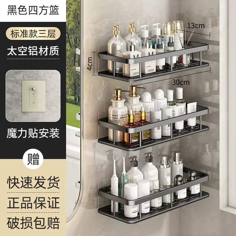 • 3단 - 은색 사각바구니 [업그레이드된 두꺼운 버전 + 접착테이프 설치 불필요]