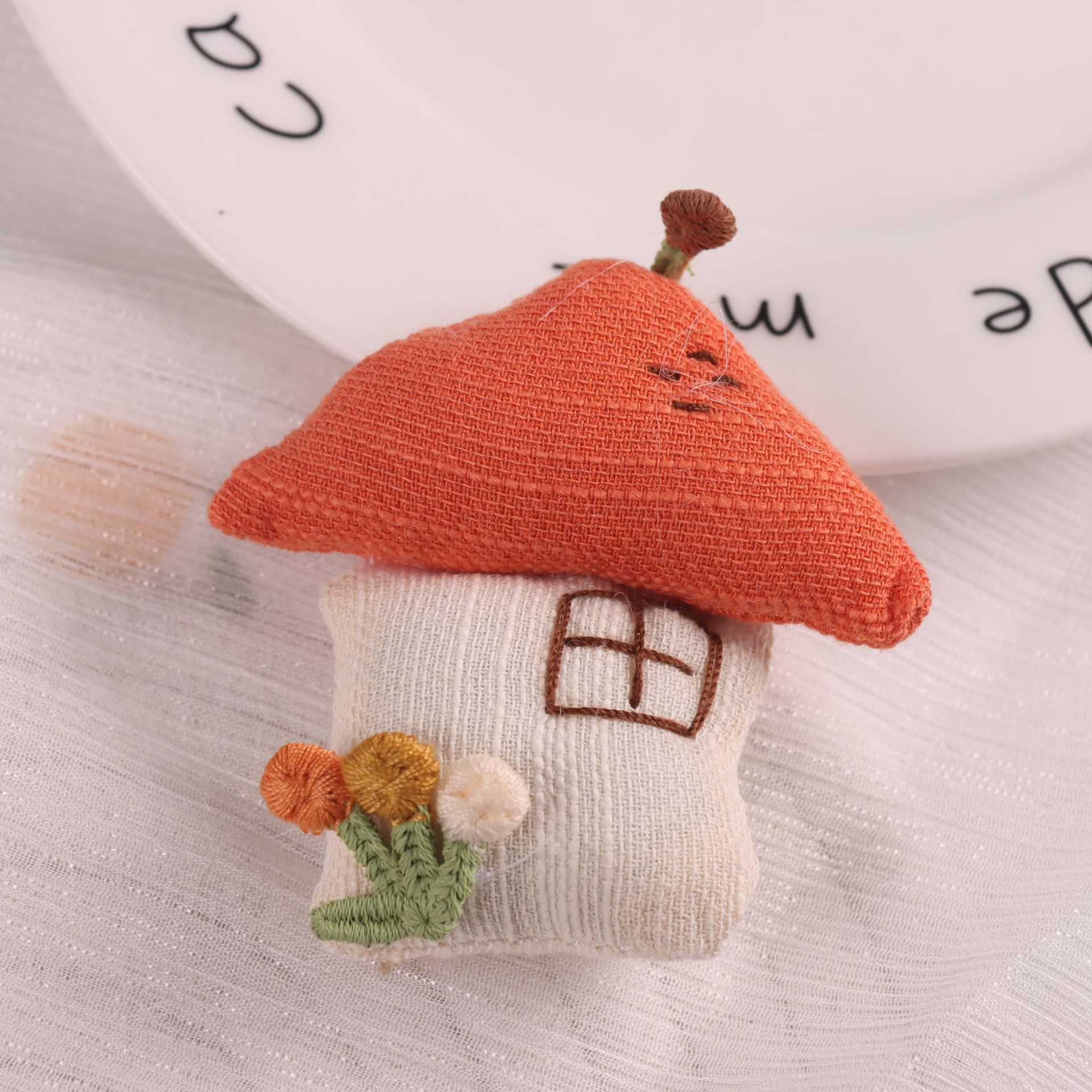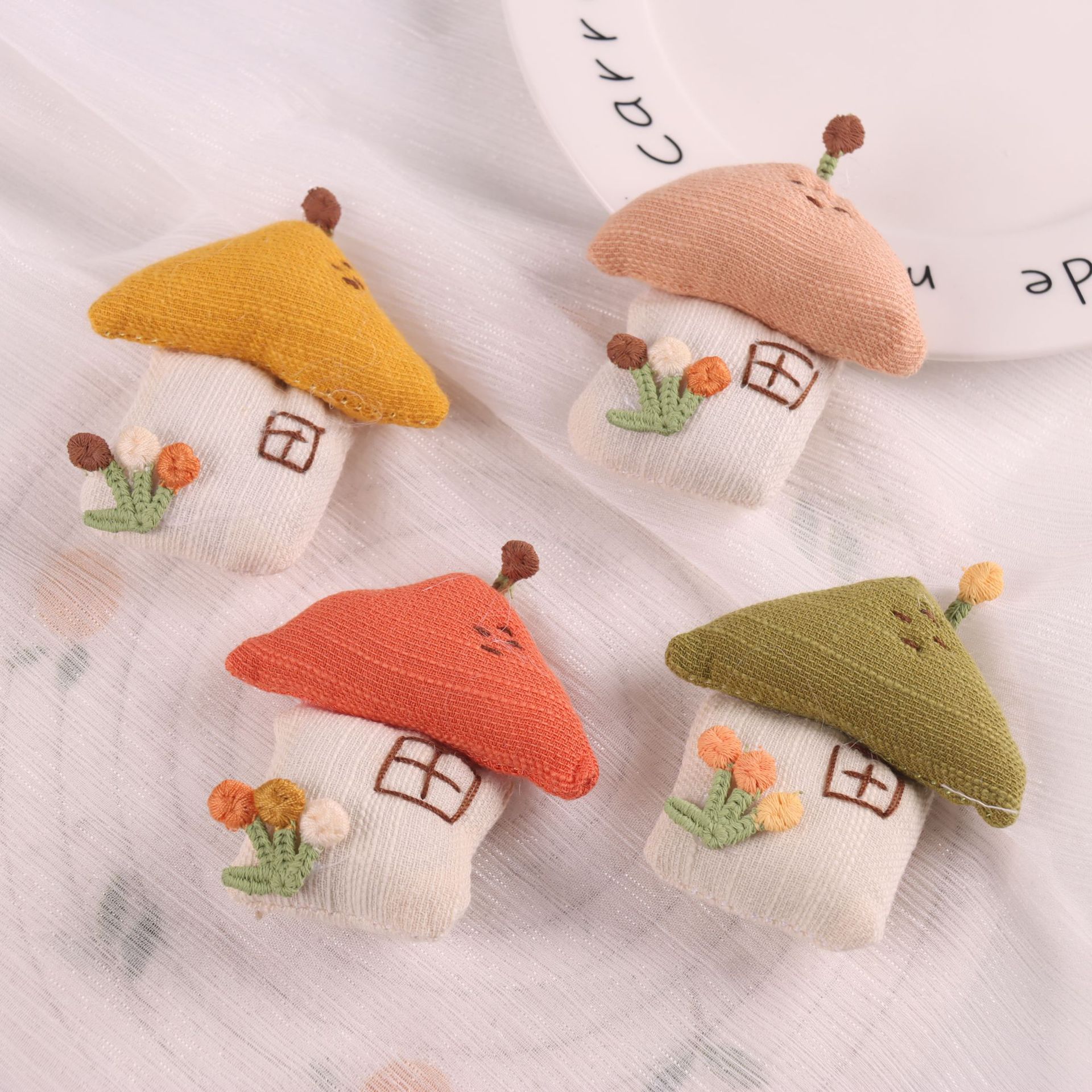 새로운 수제 면화 채워진 면 린넨 패브릭 3 차원 자수 만화 하우스 브로치 액세서리 액세서리 신발 양말 액세서리