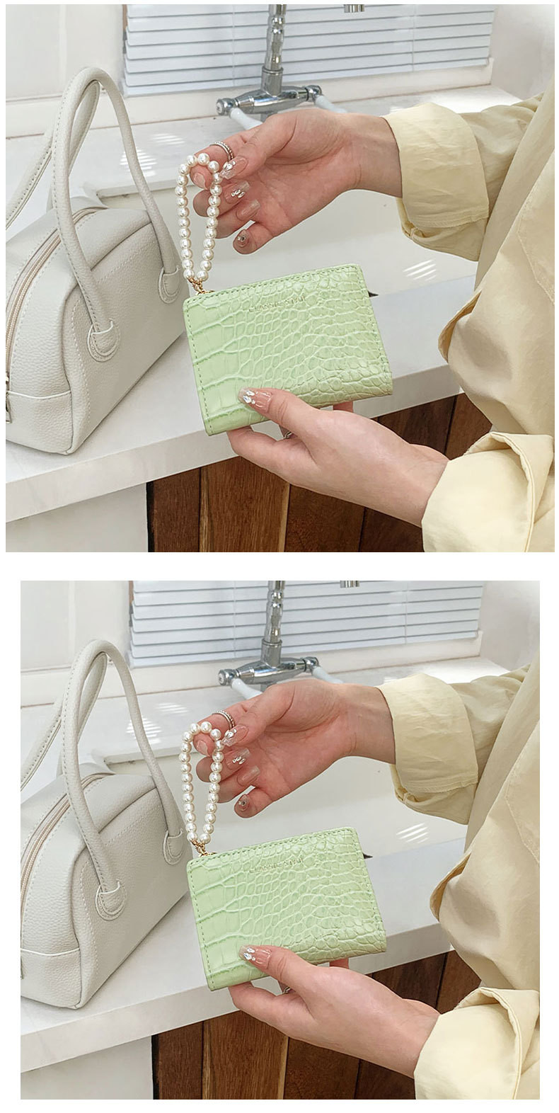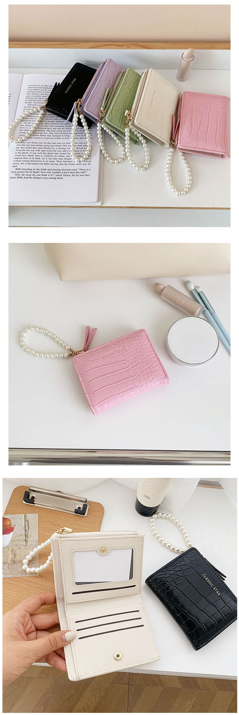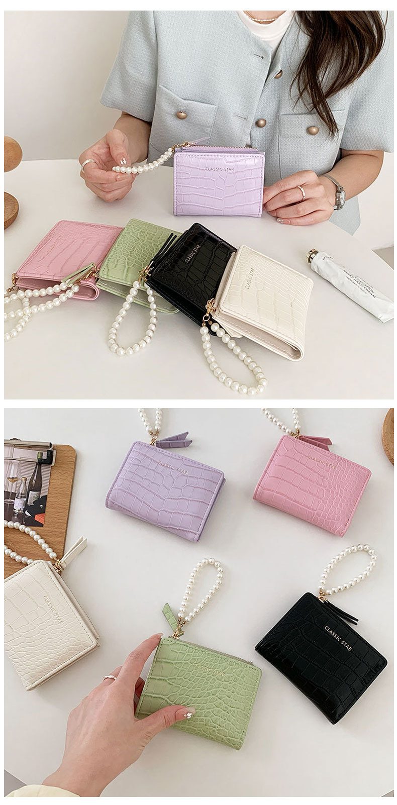 휴대용 지갑 ~! Ins 간단한 한국 패션 악어 진주 체인 접히는 대외 무역 동전 지갑 여성 지갑스토어 가기