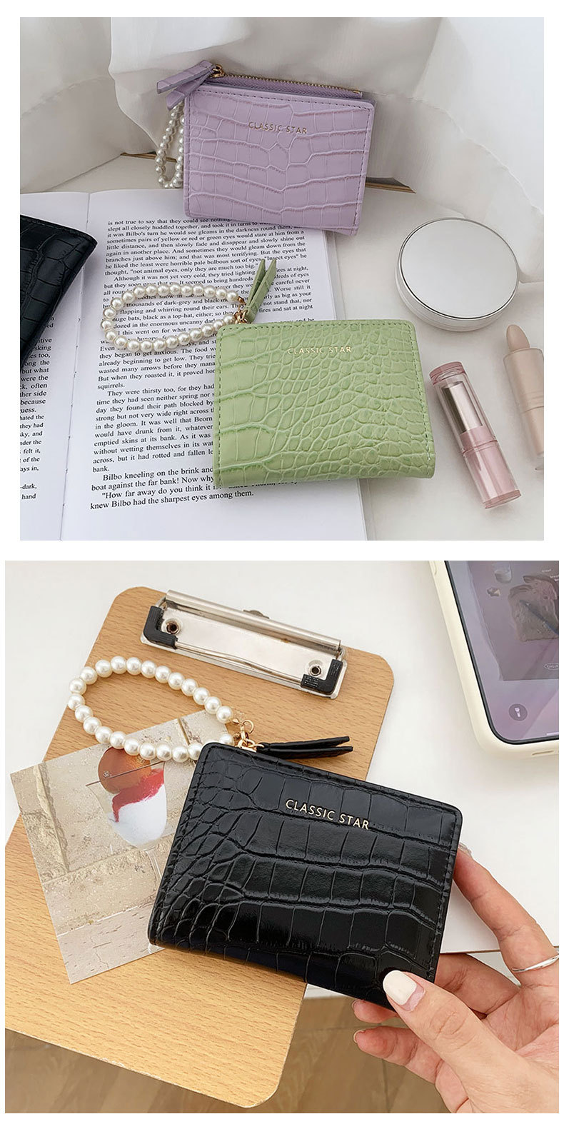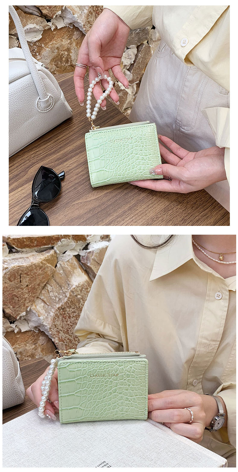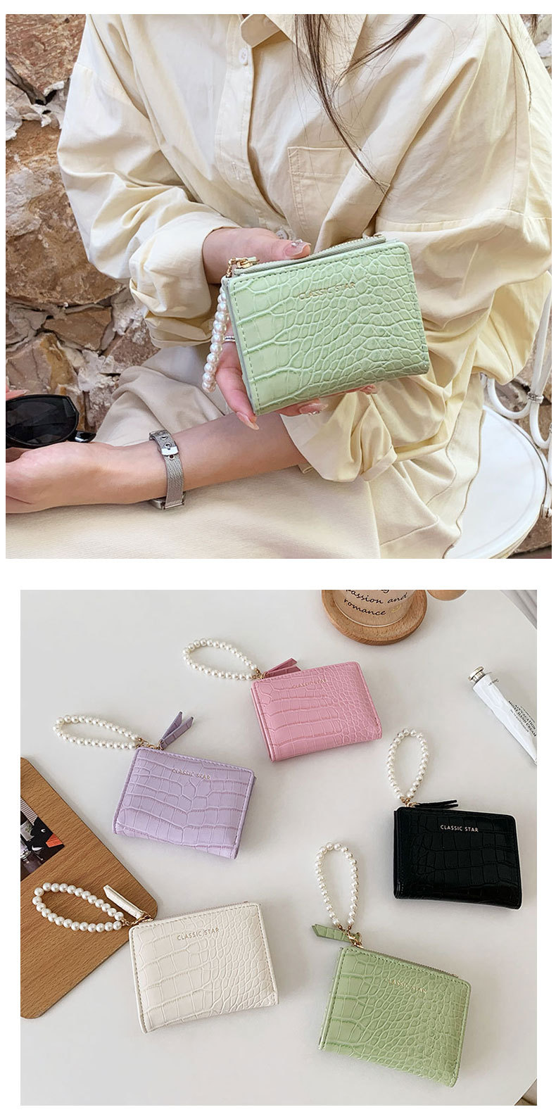 휴대용 지갑 ~! Ins 간단한 한국 패션 악어 진주 체인 접히는 대외 무역 동전 지갑 여성 지갑스토어 가기