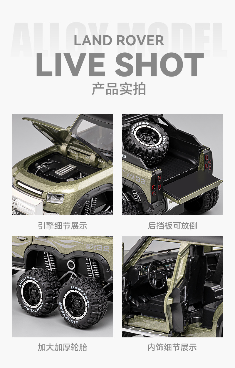 • 1:24 랜드로버 디펜더 6X6 녹색 브래킷 모델