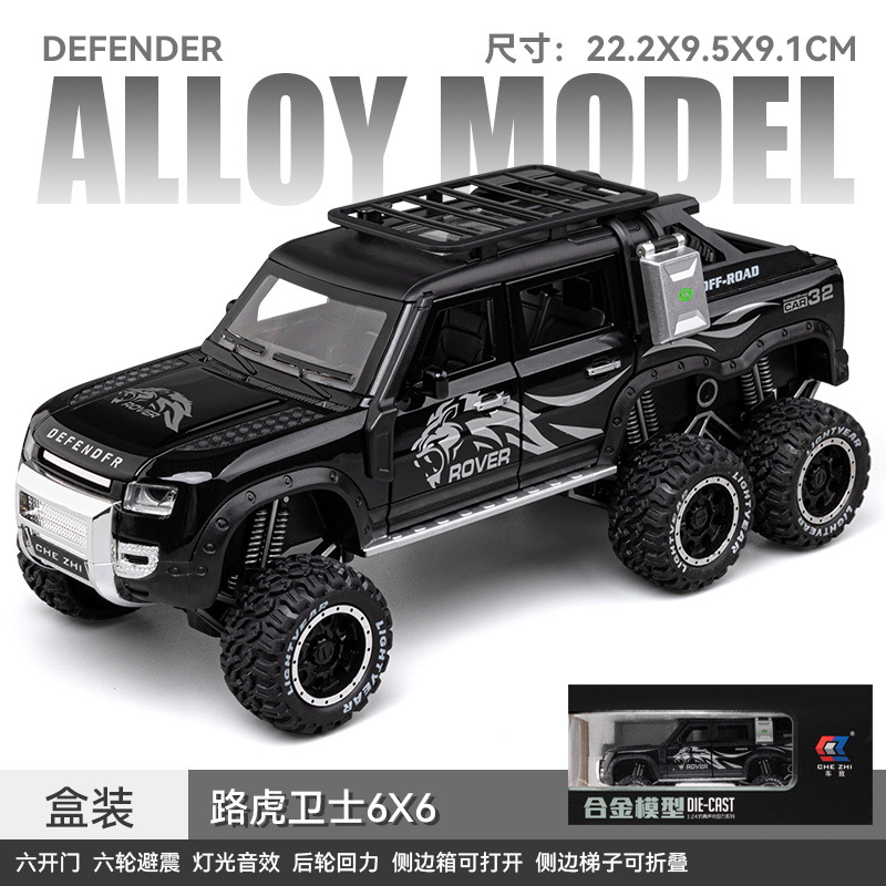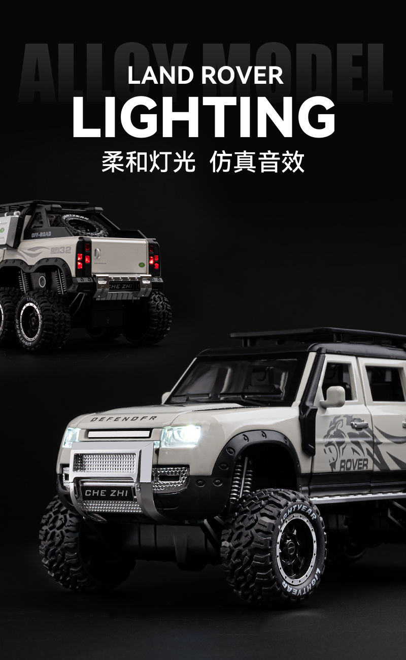 1:24 랜드 로버 수비수 6*6 합금 자동차 모델 오프로드 차량 픽업 트럭 소년 시뮬레이션 자동차 컬렉션 장식품