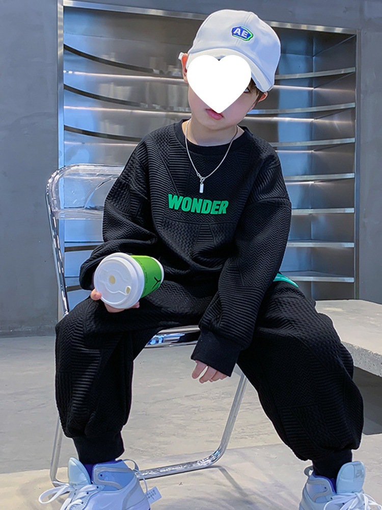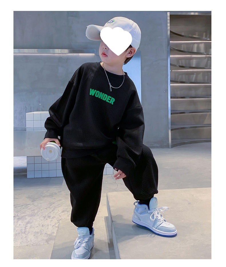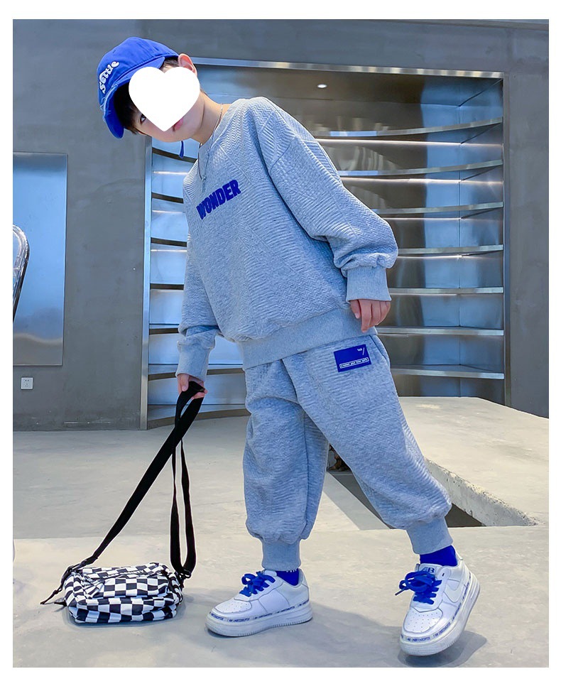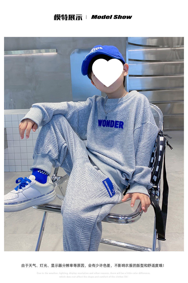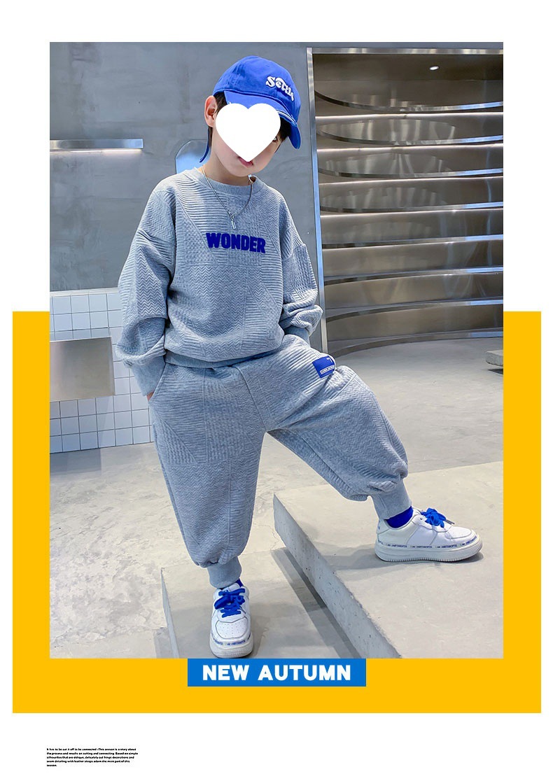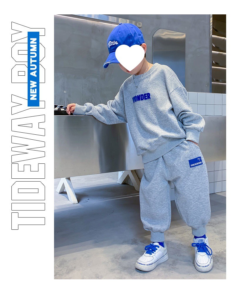 소년의 봄과 가을 프라이드 스트리트 세트 큰 어린이 가을 새로운 솔리드 컬러 스포티 크루 넥 스웨터 바지 투피스 세트스토어 가기