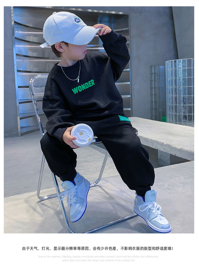 소년의 봄과 가을 프라이드 스트리트 세트 큰 어린이 가을 새로운 솔리드 컬러 스포티 크루 넥 스웨터 바지 투피스 세트