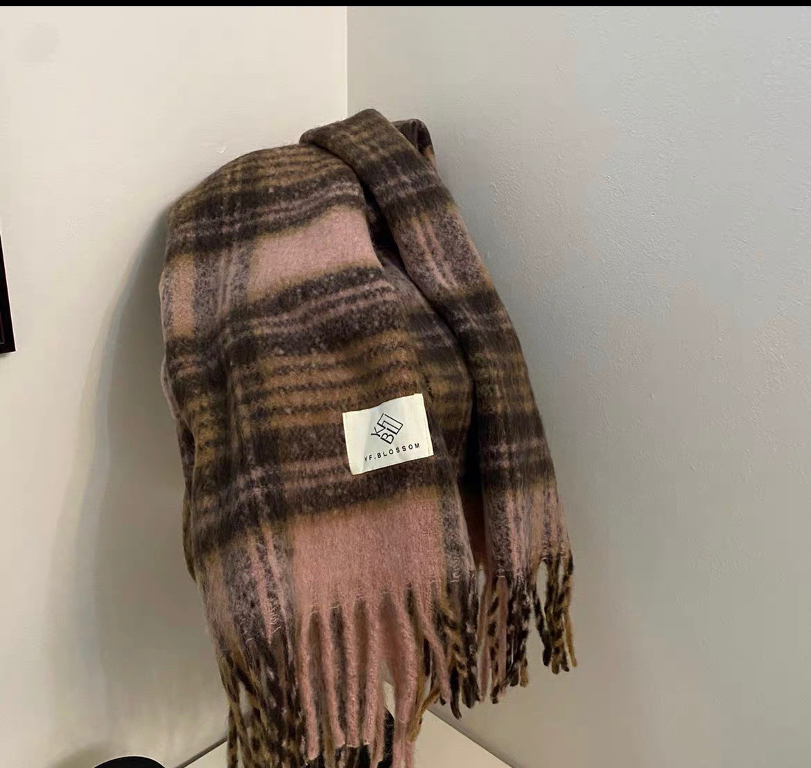 수출 한국 오리지널 영국 민트 그린 다크 브라운 체크 무늬 스카프 겨울 새로운 모헤어 따뜻한 목 목도리스토어 가기