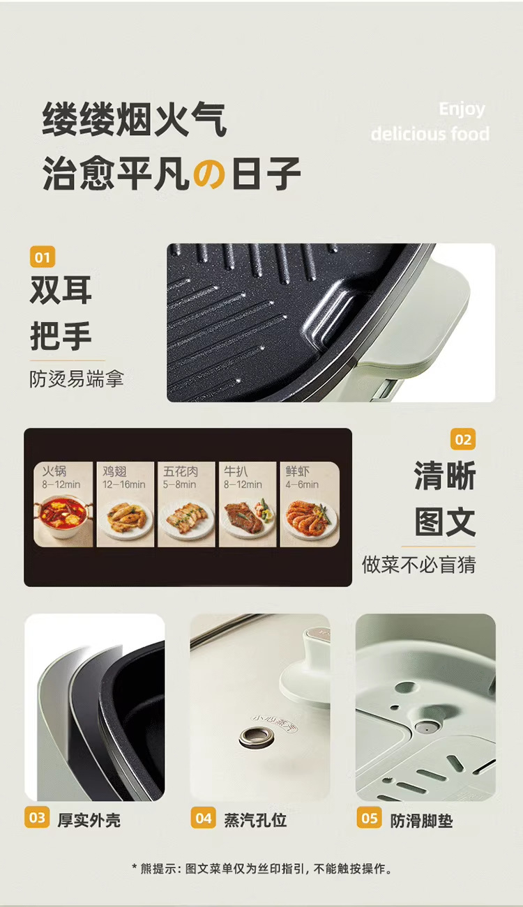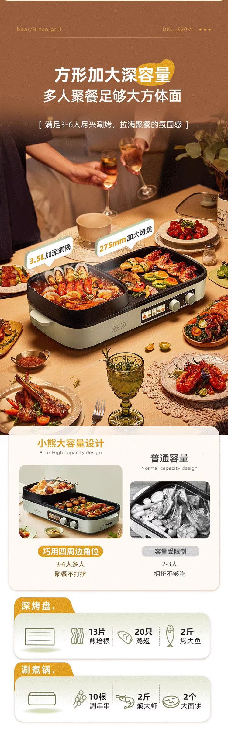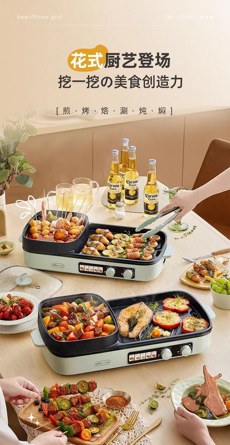 베어 로스트 및 린스 통합 이중 목적 냄비 DKL-E20V1 바베큐 뜨거운 냄비 통합 다기능 냄비 전기 그릴 팬 전기 그릴스토어 가기