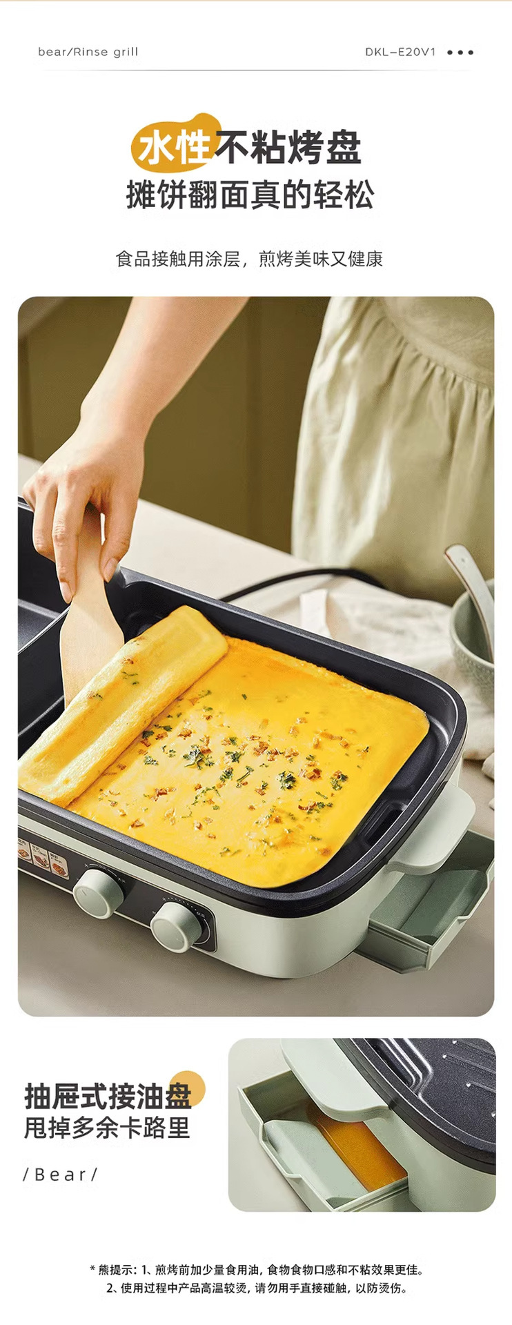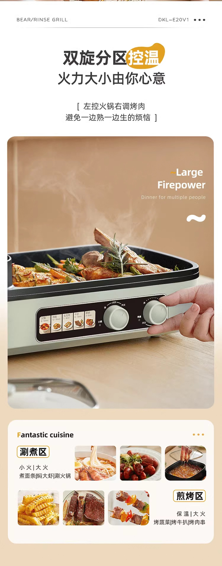 베어 로스트 및 린스 통합 이중 목적 냄비 DKL-E20V1 바베큐 뜨거운 냄비 통합 다기능 냄비 전기 그릴 팬 전기 그릴