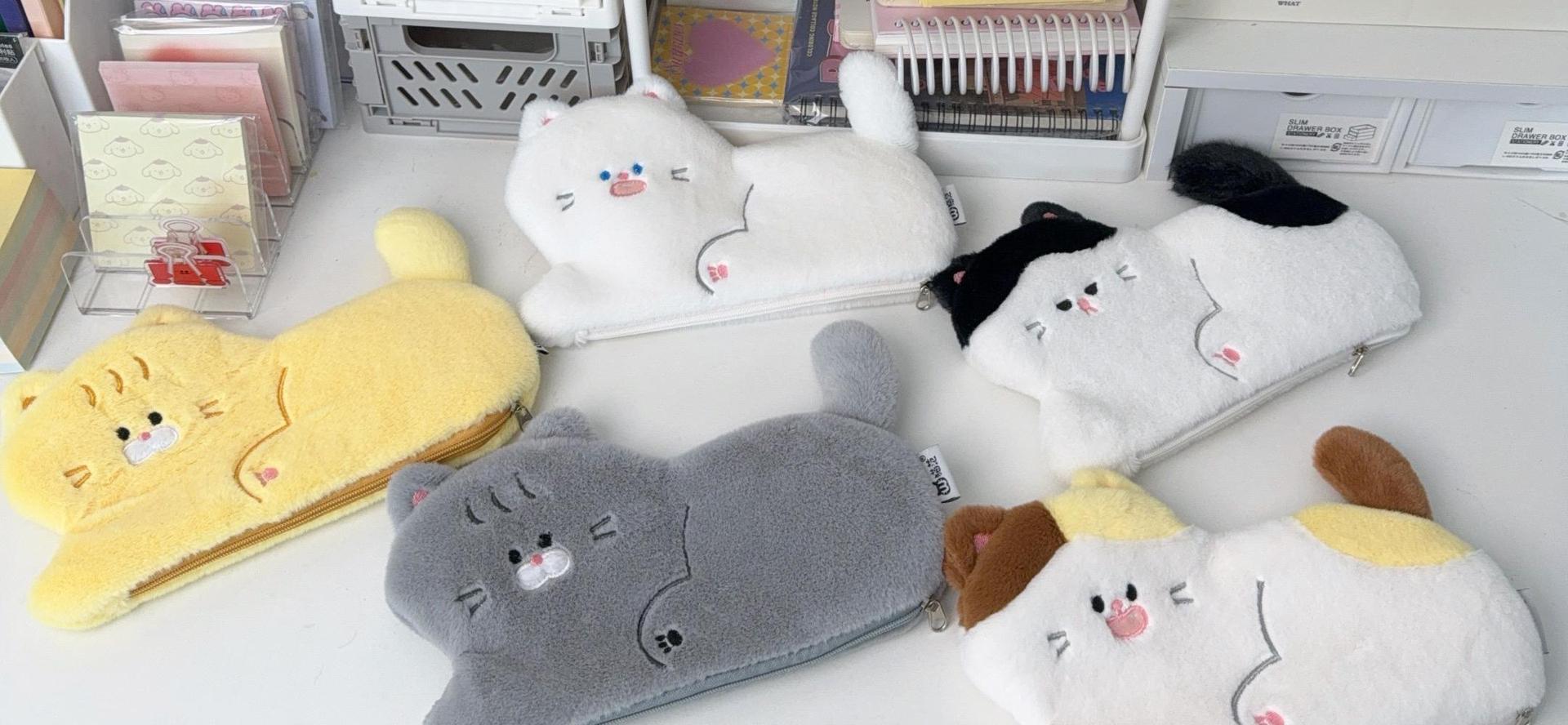 고양이 팬 귀여운 키티 연필 케이스 중학생 봉제 문구 상자, 일본 대용량 새 소녀스토어 가기