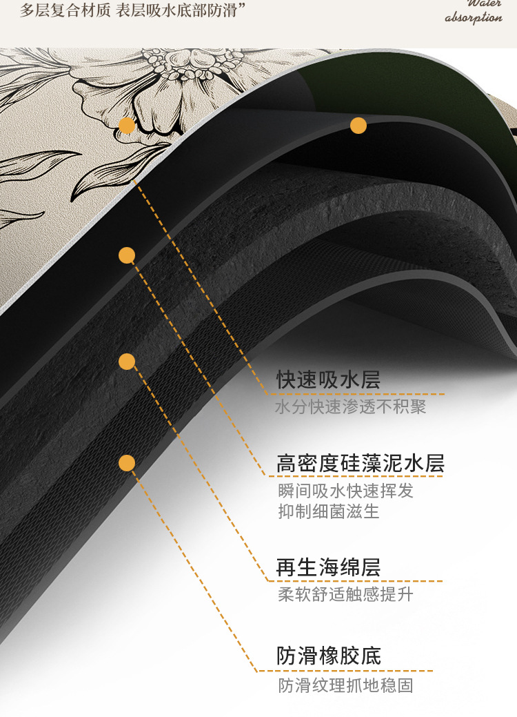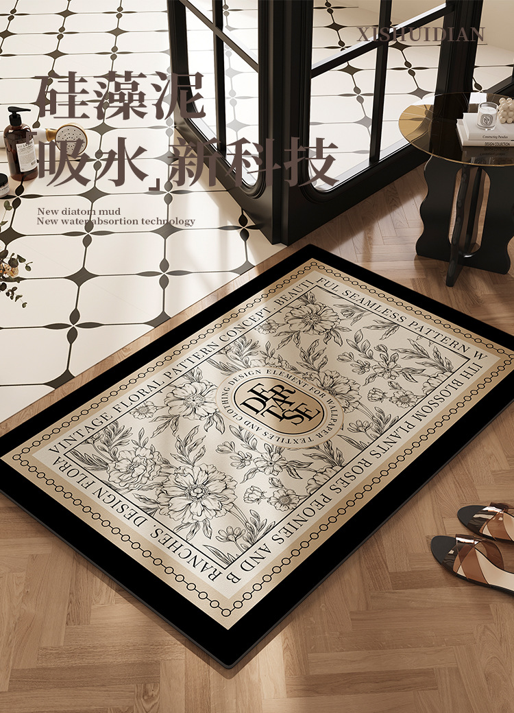 우아한 프랑스 스타일의 욕실 바닥 매트 문도 먼지 저항하는 주방 발코니 욕실 문 용수 흡수제 빠른 건조 Diatom 진흙 발 매트
