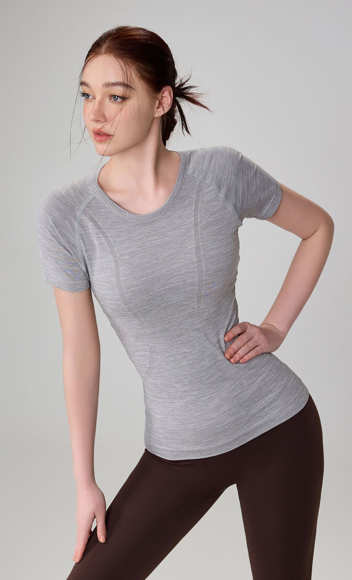 여성을 위한 심리스 항균 누드 슬림핏 요가탑, 슬리밍 런닝, 피트니스 반팔 허리 타이트 요가복스토어 가기