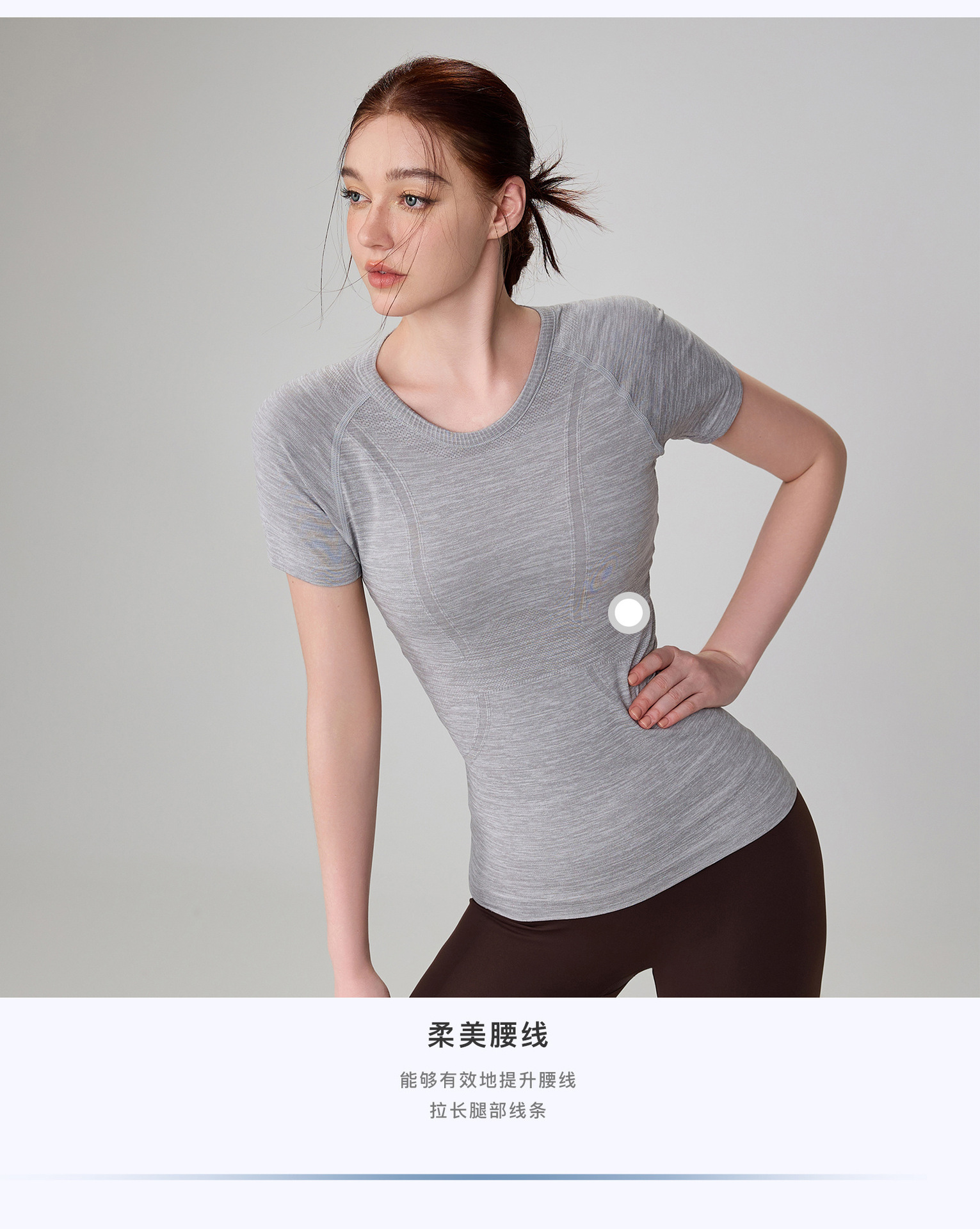 여성을 위한 심리스 항균 누드 슬림핏 요가탑, 슬리밍 런닝, 피트니스 반팔 허리 타이트 요가복