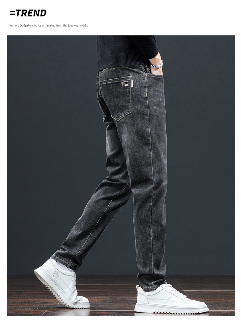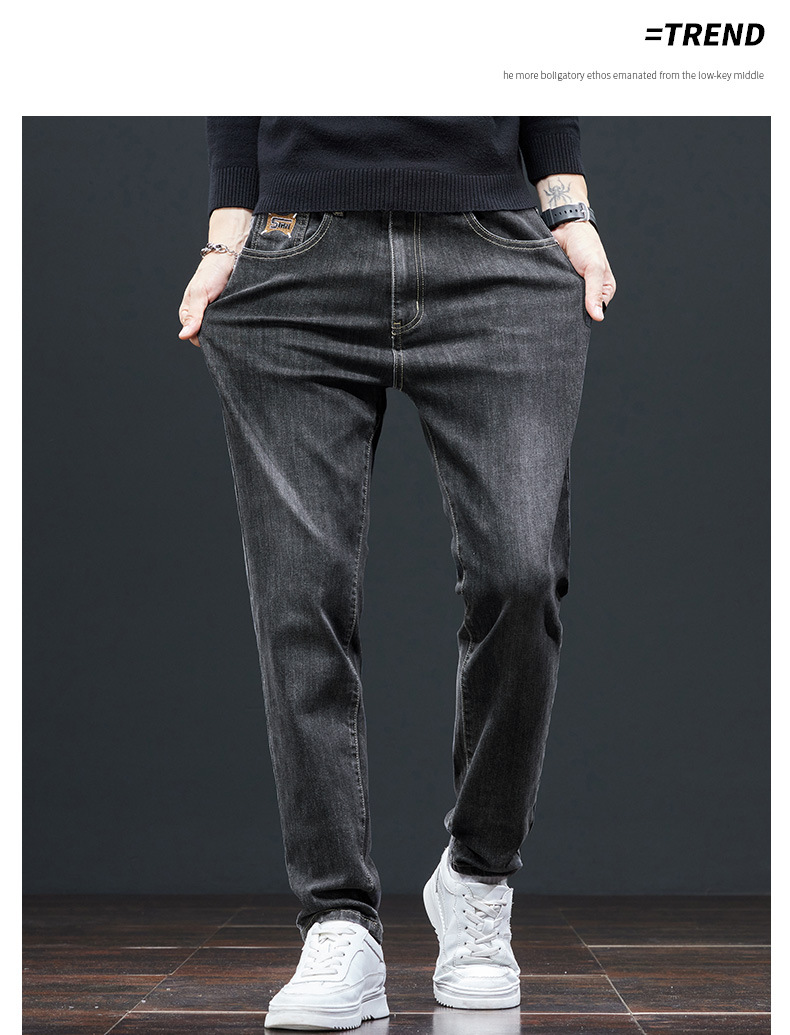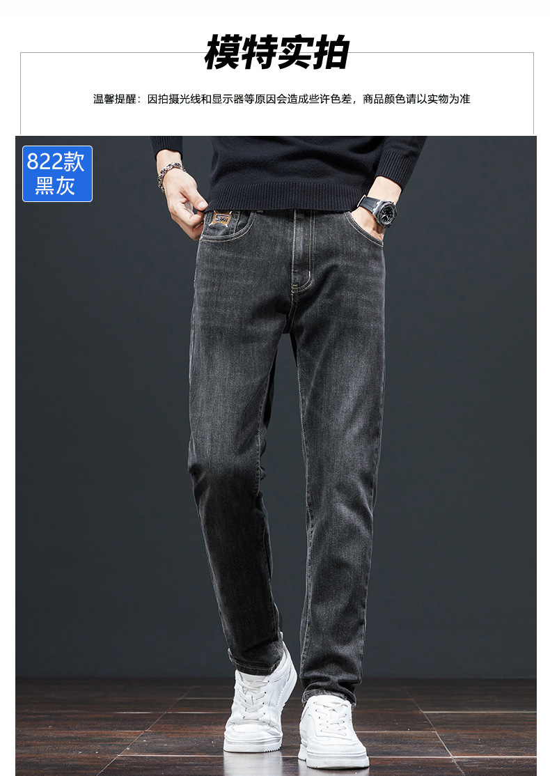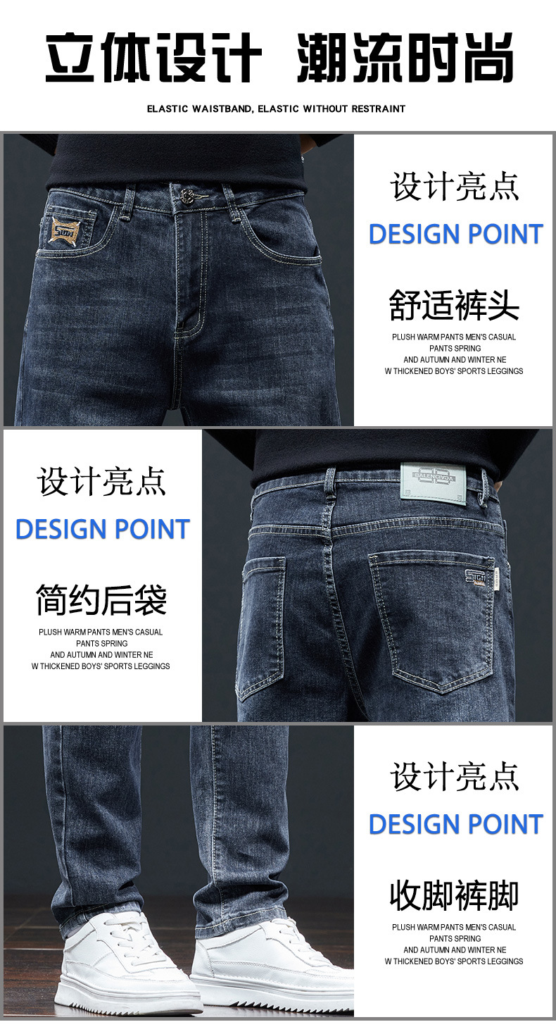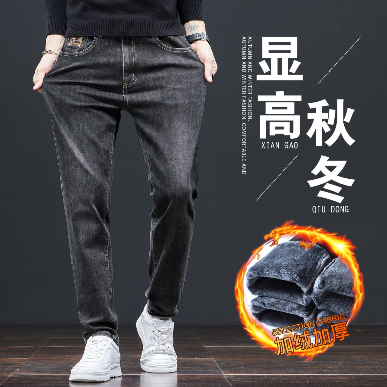 가을 신상 남성용 청바지 스트레이트 슬림핏 신축성 캐주얼 팬츠 2025 겨울 기모 두꺼운 캐주얼 바지