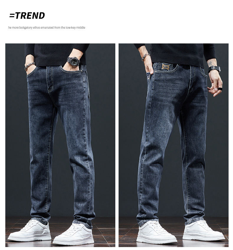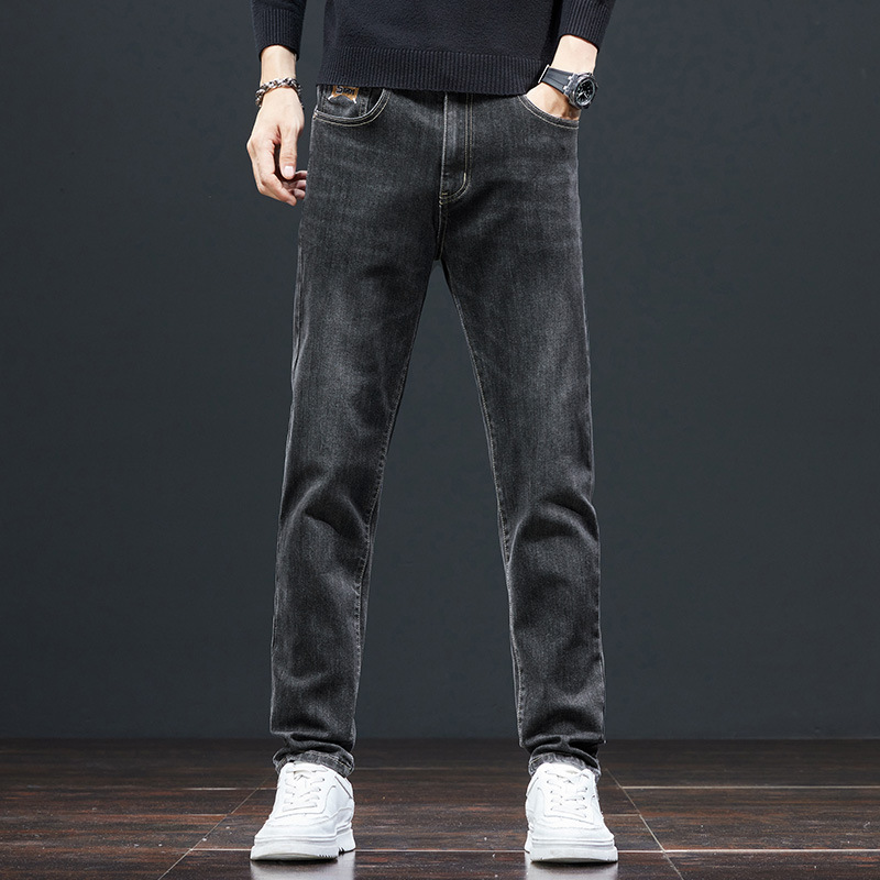 가을 신상 남성용 청바지 스트레이트 슬림핏 신축성 캐주얼 팬츠 2025 겨울 기모 두꺼운 캐주얼 바지스토어 가기