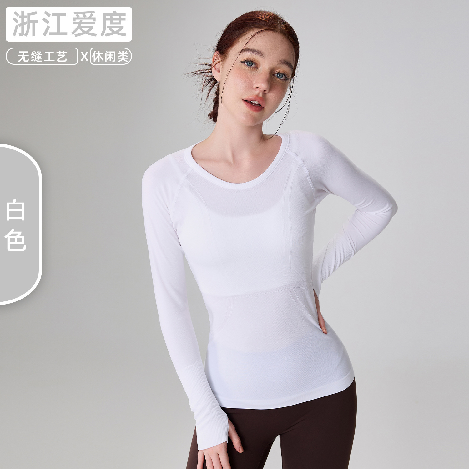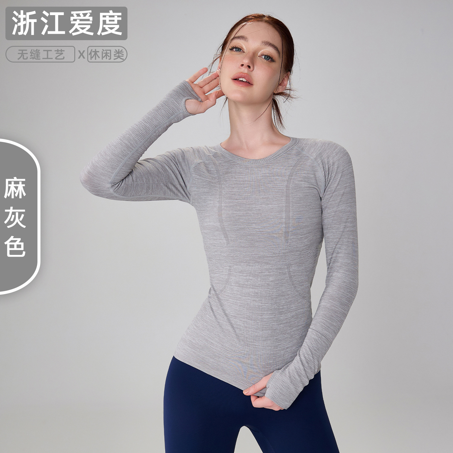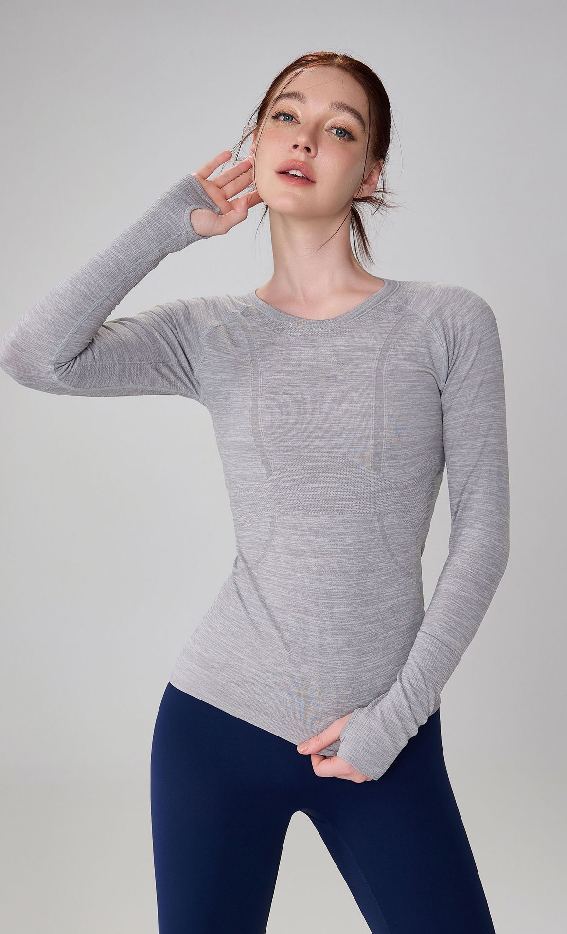 가을 원활한 알몸 피트니스 세트 여성용 3 차원 슬림 요가 세트 겨울을위한 긴팔 통기성 라운드 넥 러닝 스포츠 탑