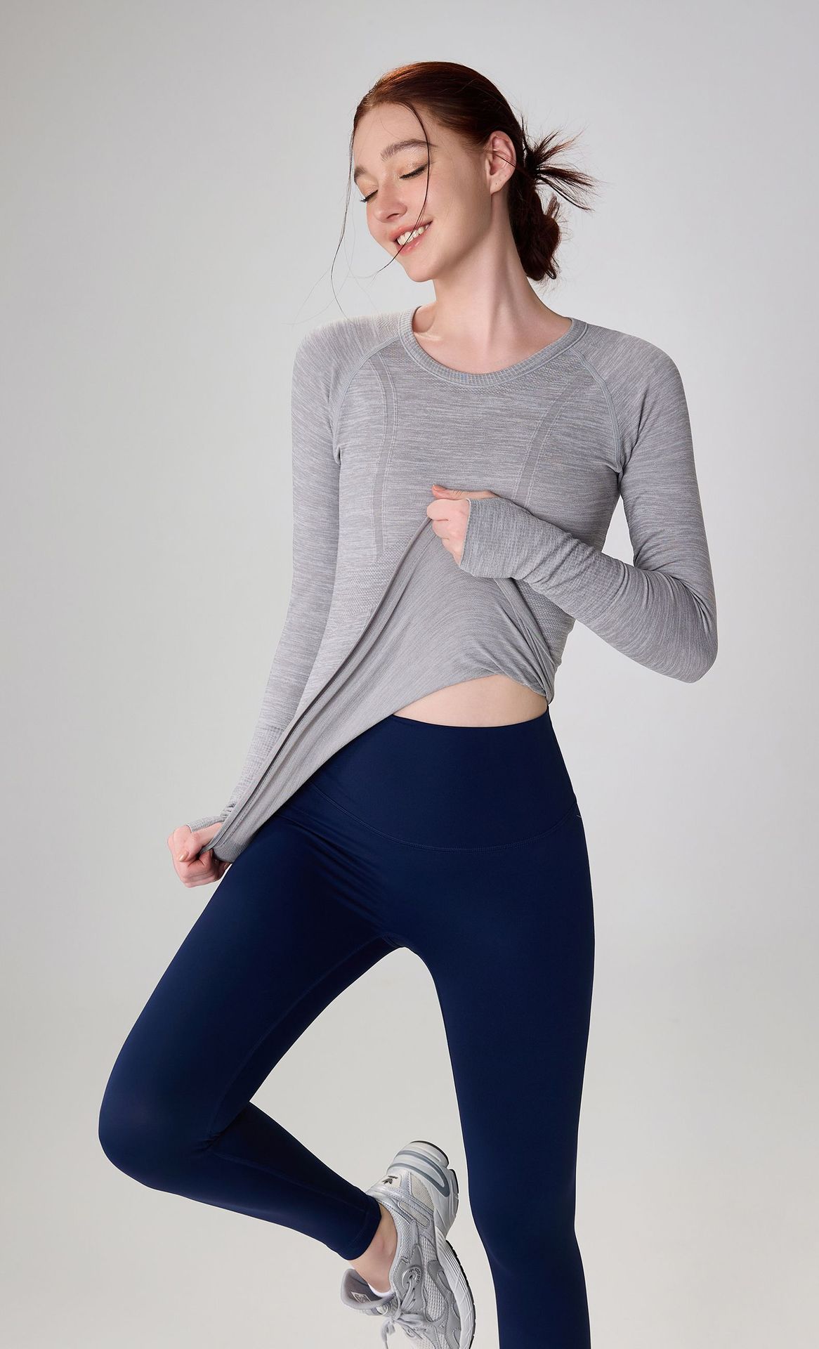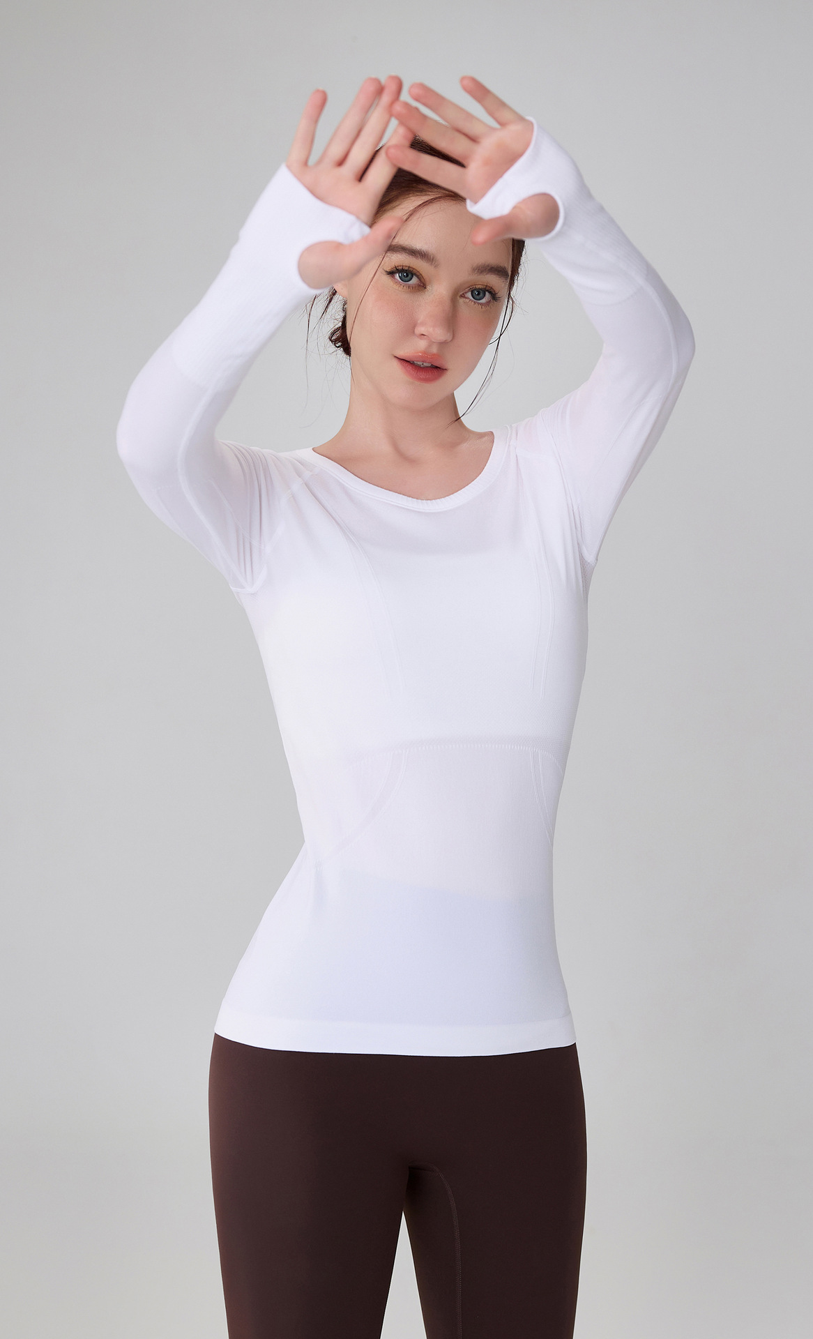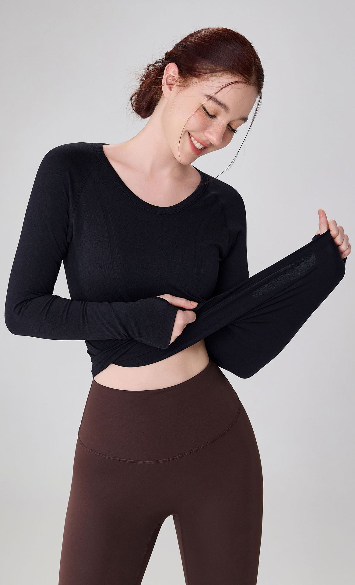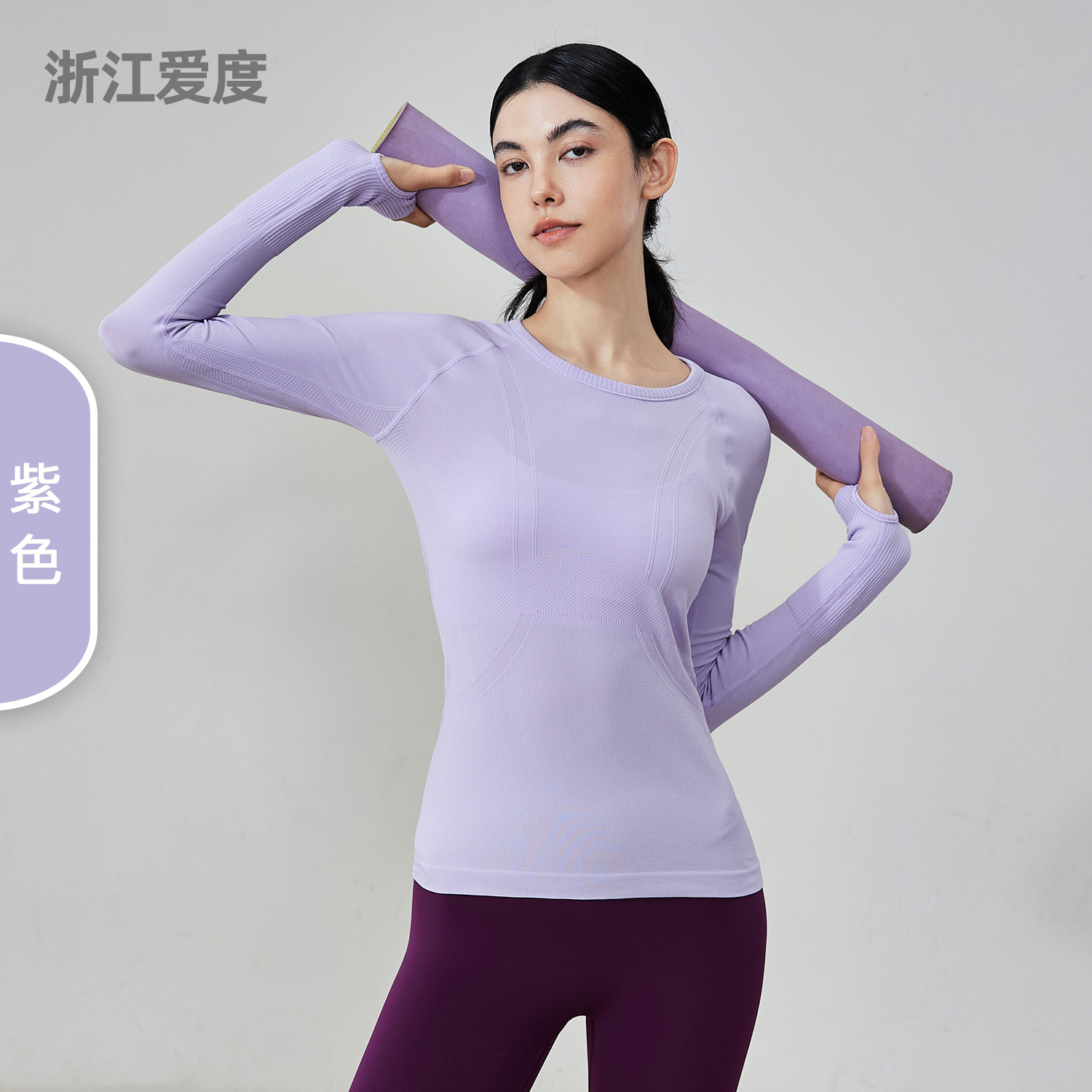 가을 원활한 알몸 피트니스 세트 여성용 3 차원 슬림 요가 세트 겨울을위한 긴팔 통기성 라운드 넥 러닝 스포츠 탑