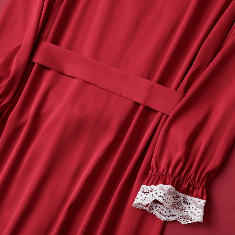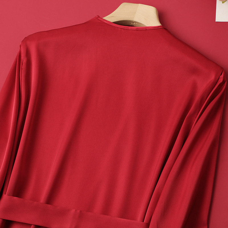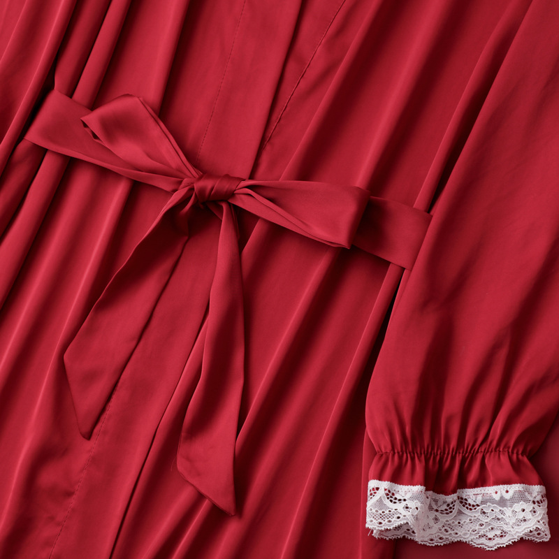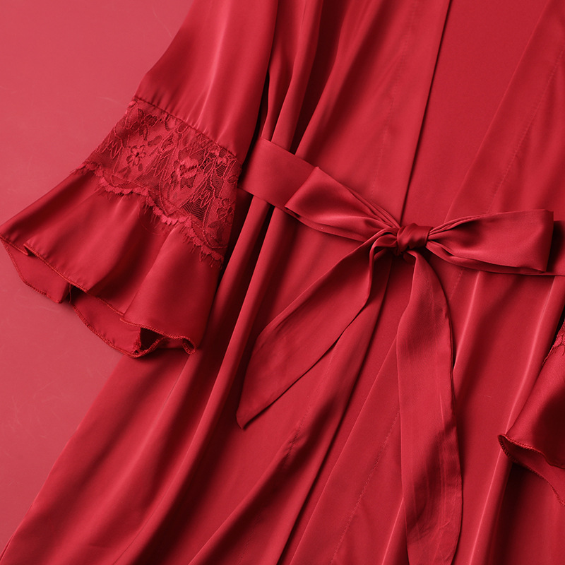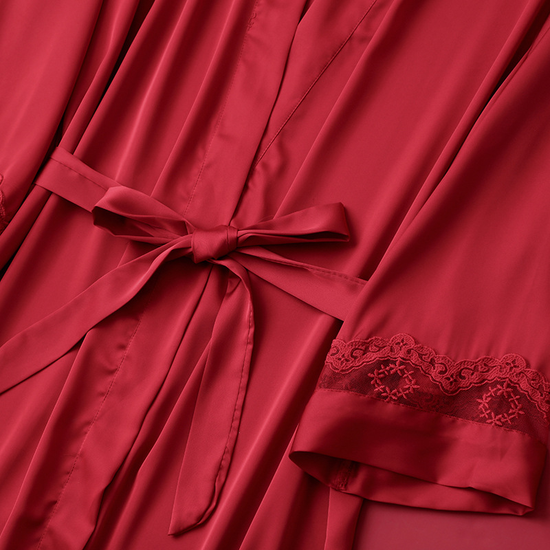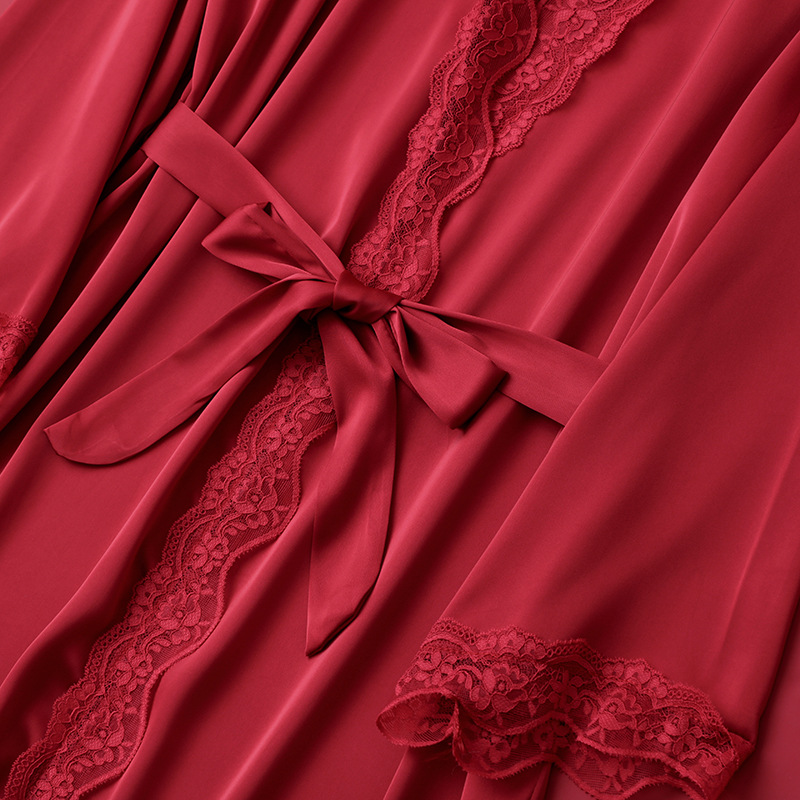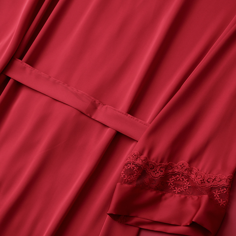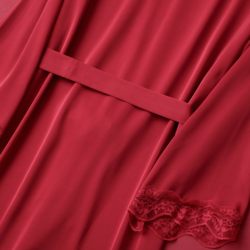 [선물 상자] 아침 가운 여성의 투피스 봄과 가을 여름 결혼식 붉은 신부 섹시한 결혼식 밤 잠옷 아이스 실크